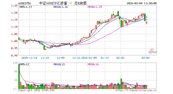 3月4日,截止午间收盘,中证500ETF汇添富(563750)跌0.44%,报1.135元,成交额1676.34万元。中证500ETF汇添富(563750)重仓股方面,英维克截止午盘涨0.29%,信维通信涨0.70%,巨人网络跌0.42%,航天电子涨1.62%,中矿资源涨0.46%,中国卫星涨0.49%,先导智能跌1.62%,卧龙电驱涨0.59%,赤峰黄金跌3.44%,兴业银锡跌5.18%。