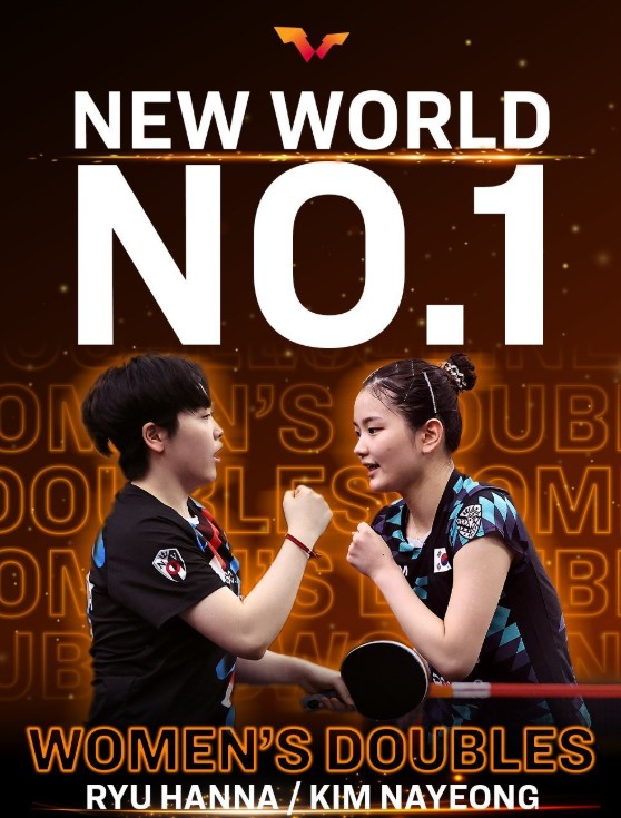 WTT更新社媒,庆祝金娜英/柳韩娜女双排名登顶世界第一