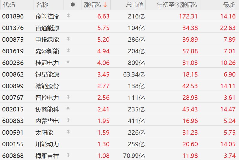 A股电力股逆势上涨,豫能控股涨超6%