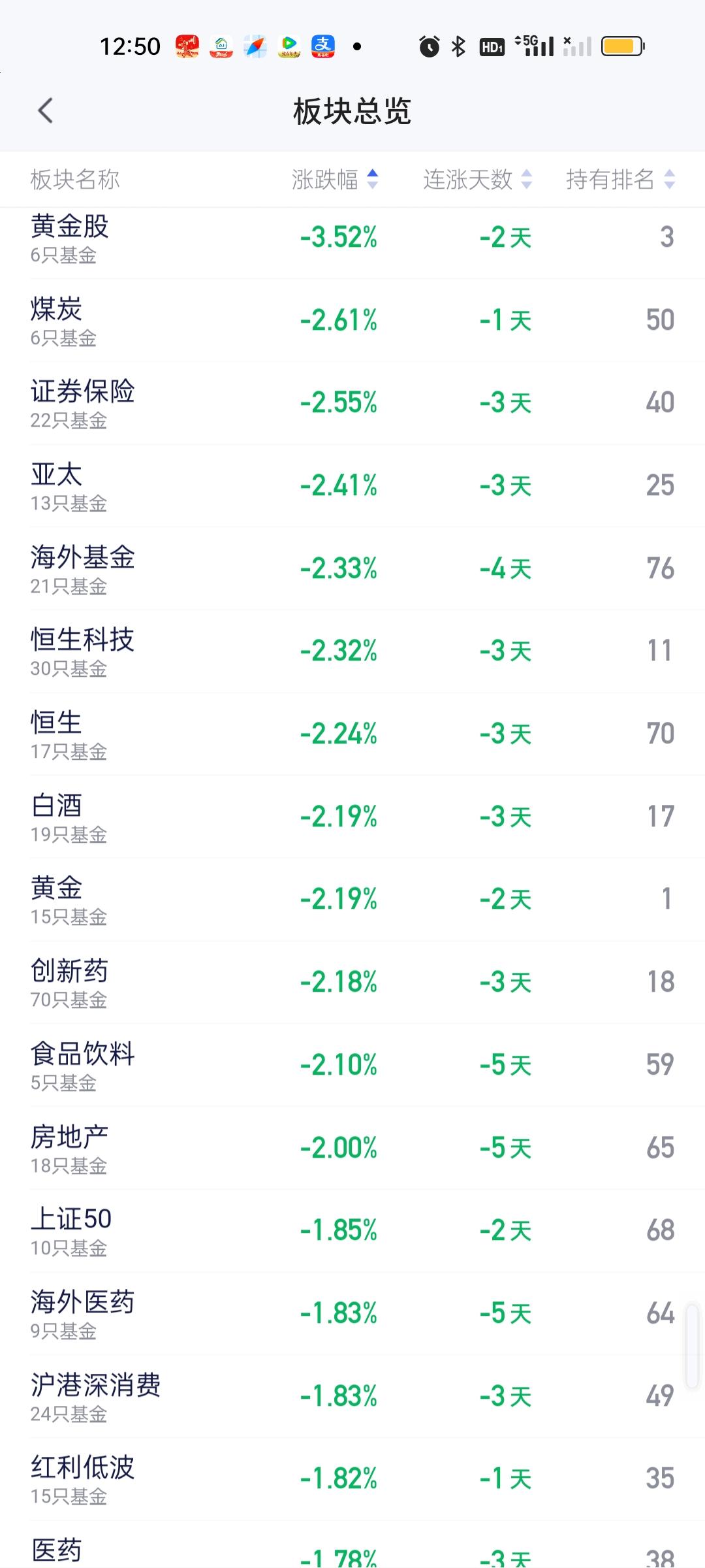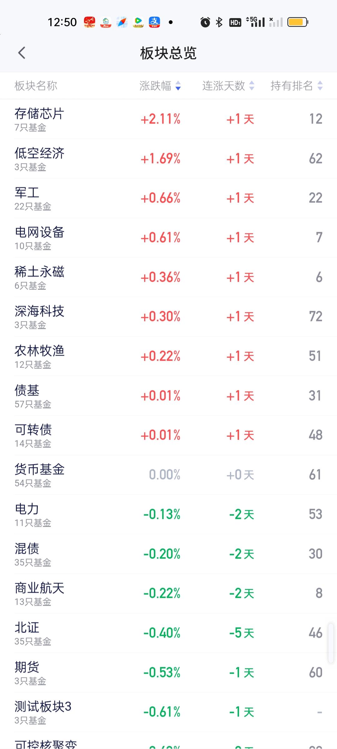 上午上涨的板块并不多,但下跌的板块跌幅也比昨天小不少,尽管指数跌幅依旧比较大,但板块的跌幅要比昨天小很多,所以严格来讲,今天的亏损效应要比昨天要小。至于是不是歇一口气再继续下杀,谁也不说不好。因为不能排除掉这种可能! 涨幅方面,存储芯片,低空经济,军工,电网设备,稀土永磁,深海科技,农林牧渔涨幅靠前,跌幅方面,黄金股,煤炭,证券保险,亚太,海外基金,恒科,恒生,白酒,黄金,创新药,食品饮料,房地产,上证50跌幅居前。