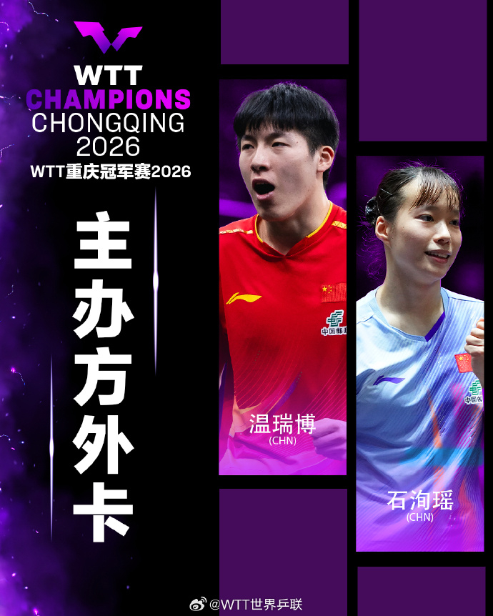 WTT官方公布重庆冠军赛提名名单及主办方外卡名单。