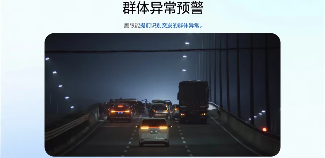 本次升级最硬核的一点,是上线了 “鹰眼报警” 功能(目前在江苏试点)。如果车辆在高速上异常停下,系统能在6秒内自动检测到,并主动询问司机是否需要报警,同时将精准位置同步给救援平台,并立即提醒后方1-3公里的所有来车减速避让。这相当于构建了一个从风险预警到事故救援的完整闭环。