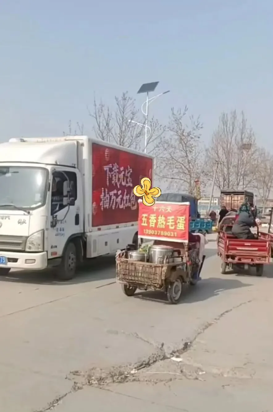 想一想,一辆贴满“⬇️元宝,抽万元🧧”的车,穿行在热闹的乡村集市里,大喇叭循环播放着魔性又地道的吆喝:“老乡 老乡!你赶紧来 点开手机就能领钱!” 那种反差感,瞬间就火了。上一秒还在挑年货、赶大集,下一秒就能跟着喇叭扫码领互联网红包,有一种AI滤镜破灭感。不过之前类似的事情腾讯元宝就干过,当时是在农村刷墙,这一次又是喇叭车进大集,这感觉把路走宽了。