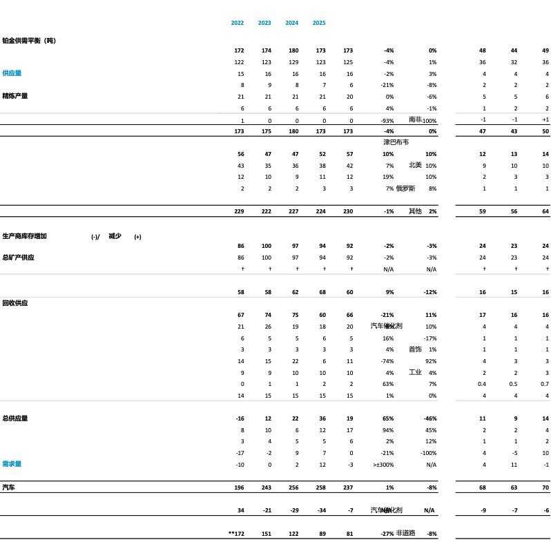 ◆铂金总供应量预计增长2%,受高价推动回收供应增长10%,矿山供应预计持平