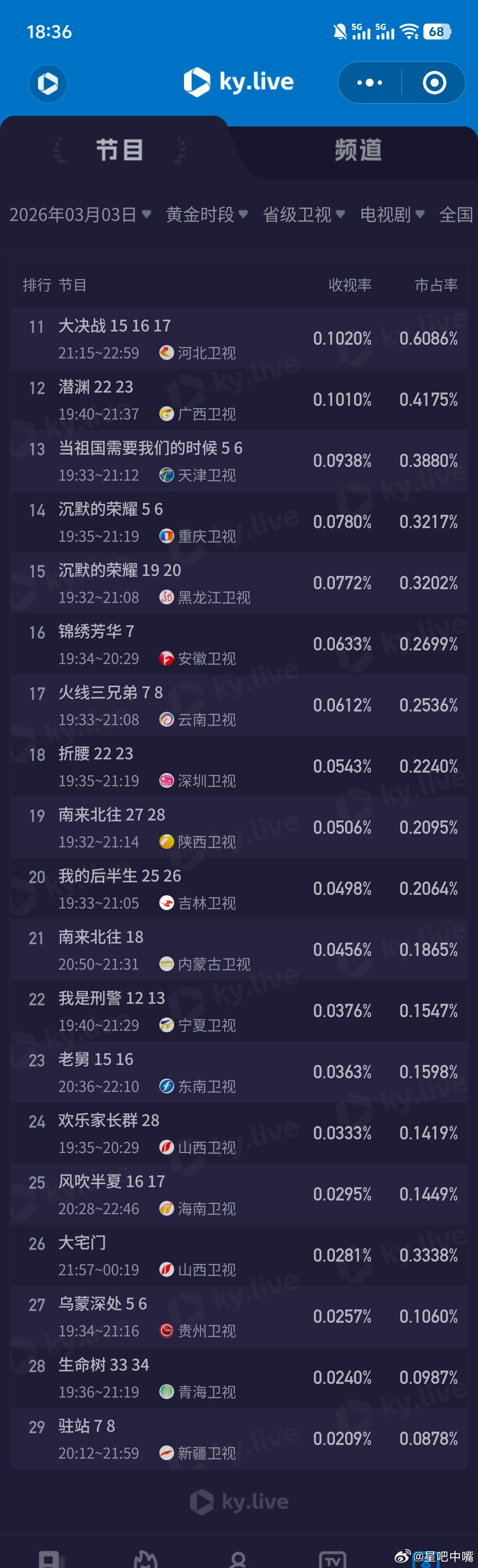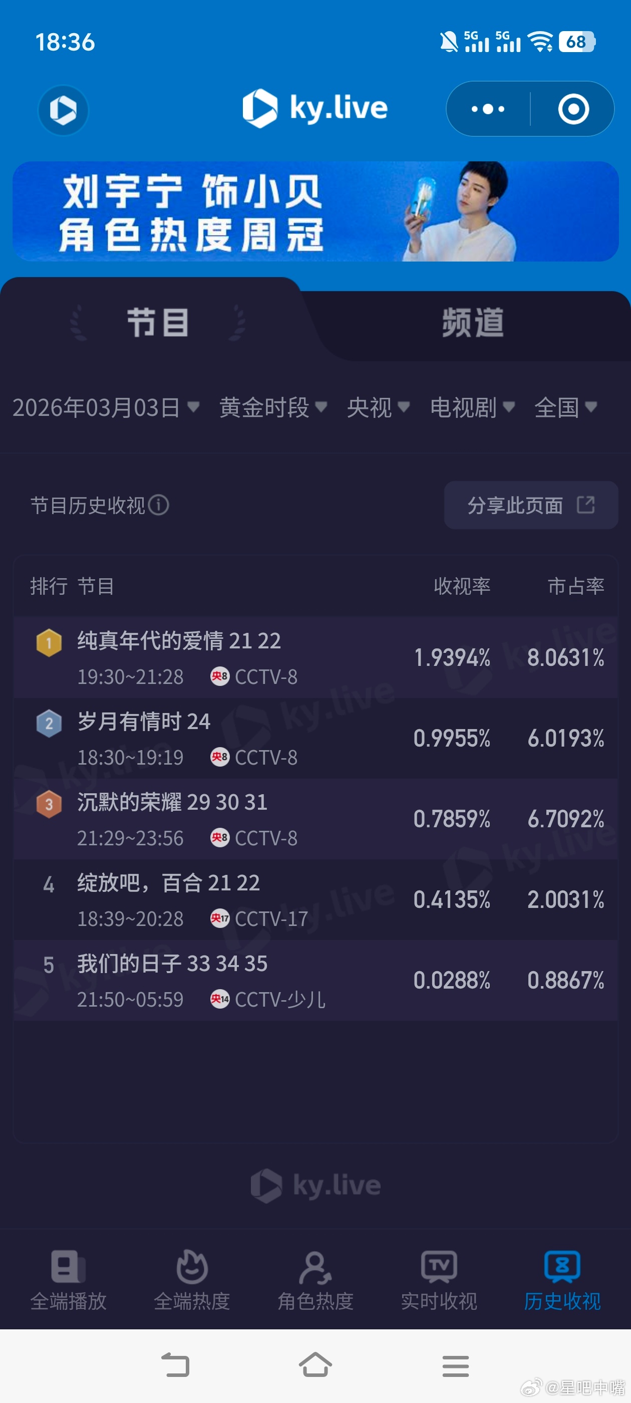阿瑟又白干了纯真年代的爱情 3月3日cvb收视日报纯真年代的爱情1.878,酷云