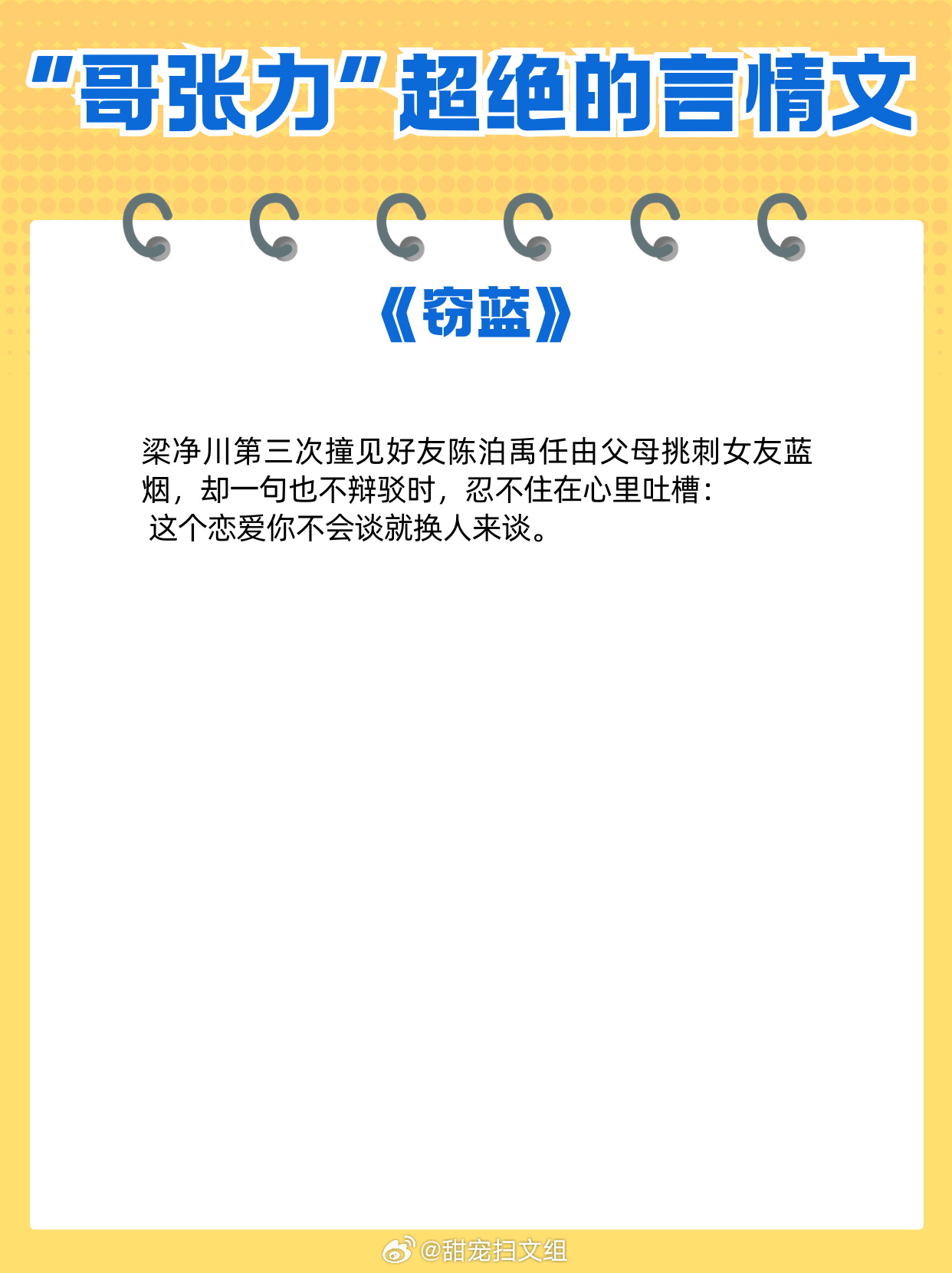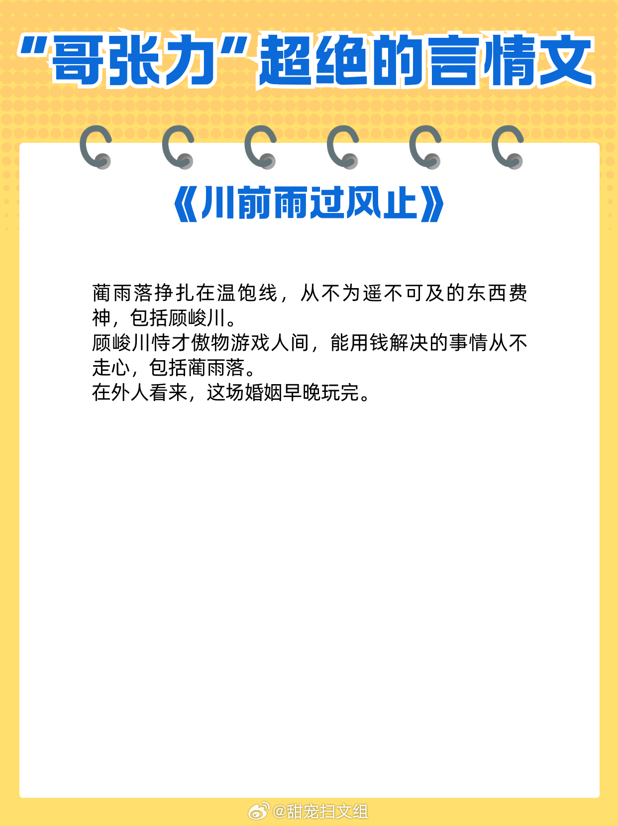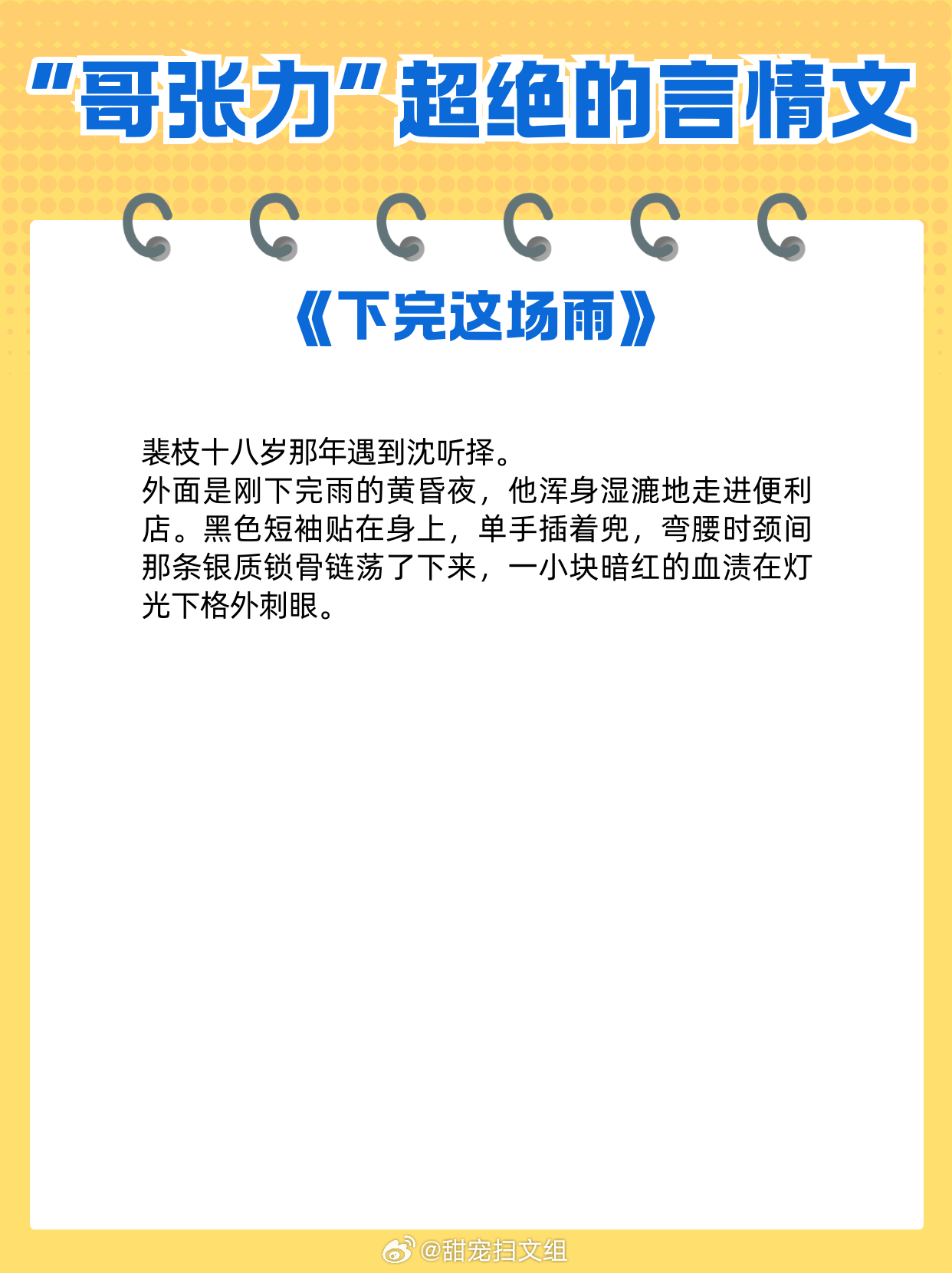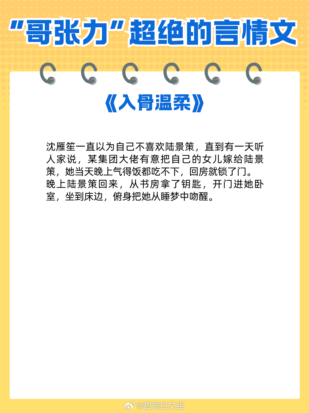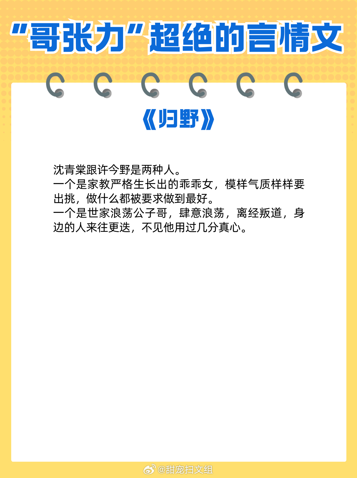 男主“哥张力”超绝的言情文,喜欢你,是我的宿命。1、《窃蓝》明开夜合2、《白日梦我》栖见3、《双璧》九月流火4、《野狗骨头》休屠城5、《川前雨过风止》姑娘别哭6、《下完这场雨》碎厌7、《入骨温柔》倪多喜8、《夏歇》雀尔9、《归野》今雾网文界的诸神之战 热门言情小说推荐
