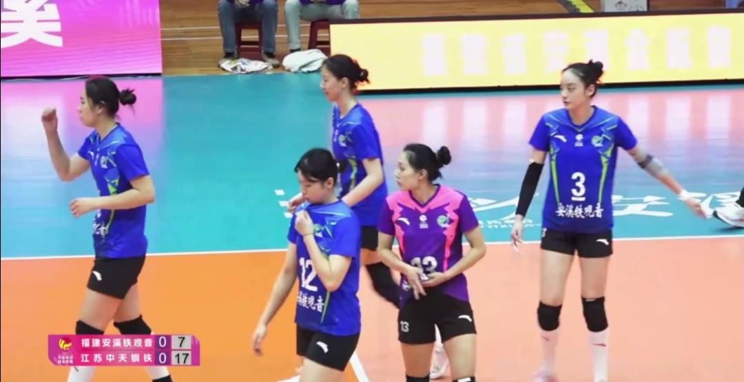 江苏队第三轮3:0零封福建队!三轮一局不失,积9分,小组第一! 江苏中天钢铁季后赛第三轮客场3:0(25-14;25-17;25-19)零封福建安溪铁观音。 江苏队 第一变化首发万梓玥换成了郭中楠。 第二变化吴梦洁大多数时间似乎成了替补! 江苏队ACE有吴梦洁、杨佳、郭中楠,第3局20-14时范泊宁连续两记ACE! 第3局,杨佳发球6:0开局! 江苏队三轮全胜,一局不失,积9分。D组第一!