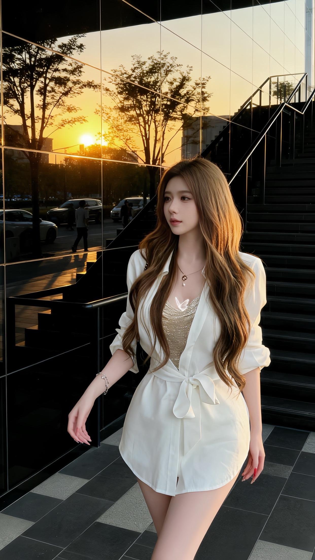 都市风穿搭,白色上衣+黑色喇叭裤,走在乡间小路上,尽显时尚与自然之美!