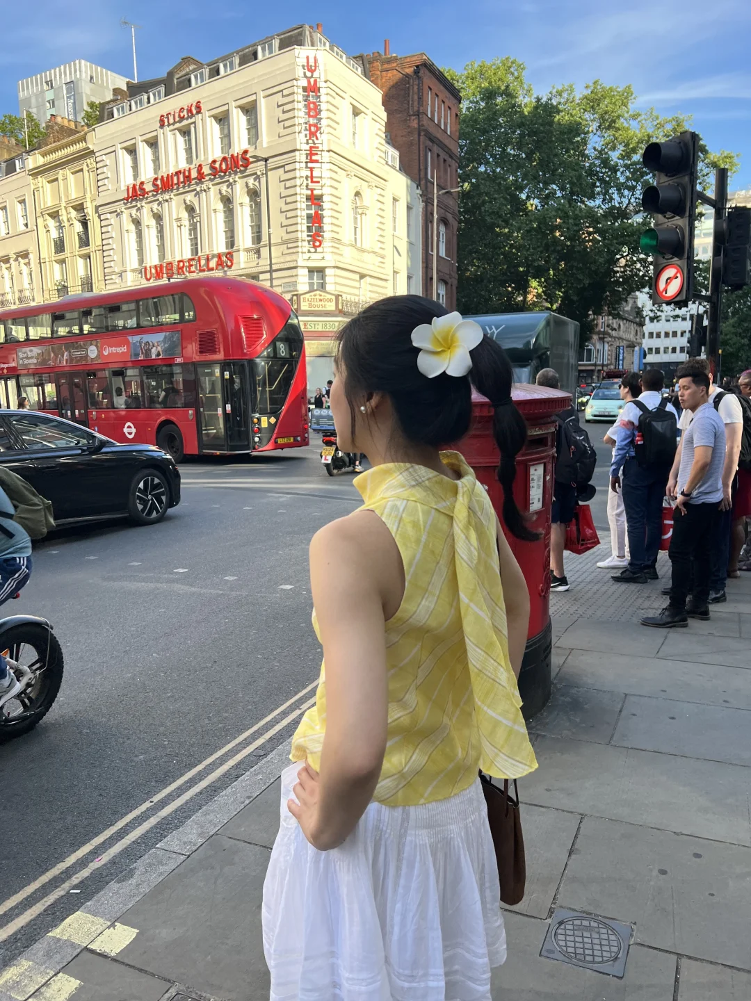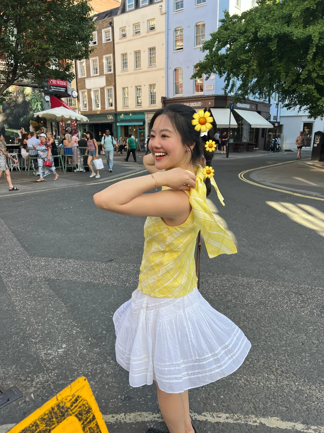 都市风穿搭,白色上衣+黑色喇叭裤,走在乡间小路上,尽显时尚与自然之美!