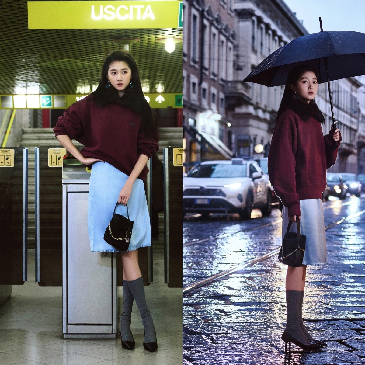 关晓彤,米兰时装周看秀酷美造型上线。关晓彤