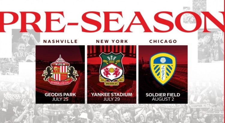 直播吧3月5日讯利物浦官方公布今夏美国行计划,红军将造访纳什维尔、纽约和芝加哥三座城市,并和桑德兰、雷克瑟姆以及利兹联进行交手。