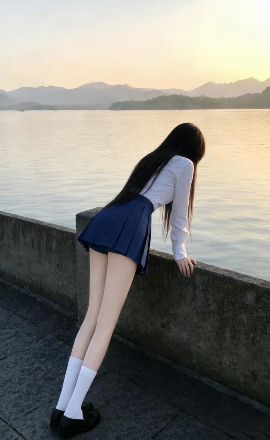 少女倚栏望湖,静谧时光,温柔如水。湖边美人景
