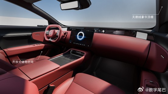 设计上还是超有辨识度的未来美学,蝶翼前脸+无后舷窗,B 柱还新添了华为乾崑标识,细节感拉满。内饰更是贴心升级,新增开放式门板储物区,回归实体车窗开关,天鹅绒顶篷质感拉满,还保留了双零重力座椅、英国之宝音响,兼顾豪华实用。
