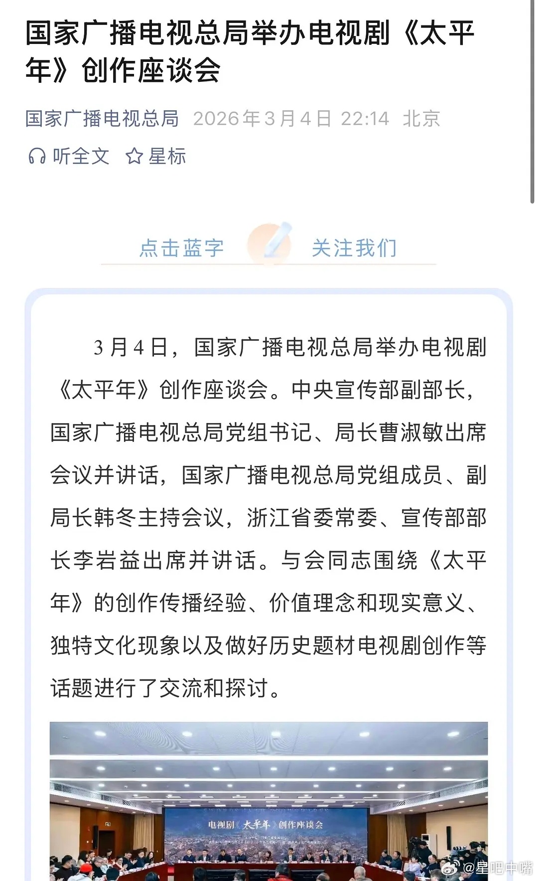 太平年研讨会国家广电总局举办,排面好大啊!!网友热议:《太平年》最佳电视剧?!