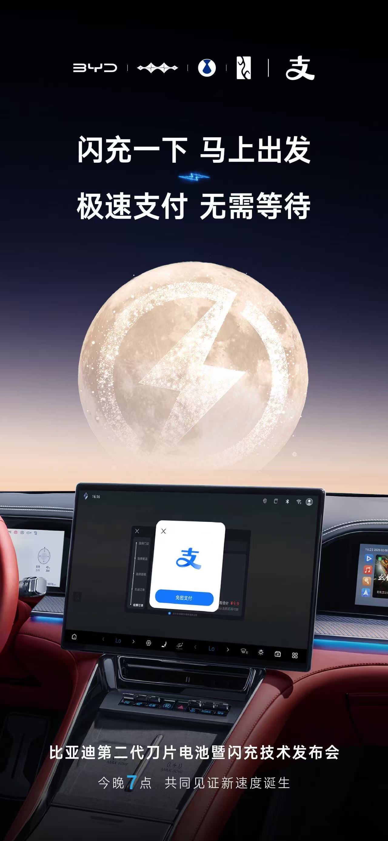 天下武功,唯快不破比亚迪联合九大先锋品牌以极致速度,让美好生活不再等待比亚迪第二代刀片电池及闪充技术今晚 19:00,共启闪充新时代!比亚迪今晚发布二代刀片及闪充 比亚迪第二代刀片电池