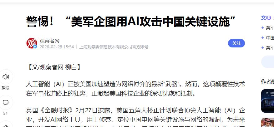 英国《金融时报》曝光一则足以震动全球的重磅消息:五角大楼正联合美国顶尖人工智能公司,研发专门针对中国关键基础设施的AI网络攻击工具,目标直指电网、公用设施与敏感网络,尤其锁定AI数据中心周边发电厂,企图在未来冲突中一击切断我国算力与民生命脉。 细思极恐,但也必须正视,网络战早已不是科幻小说,而是真实存在于我们身边。 金融时报披露,这次五角大楼盯上的不是啥小目标,核心任务直接锁定了我国的电网、公用事业、敏感网络,尤其重点关注AI数据中心附近的发电厂。 原因也简单粗暴,现在AI大模型飞速发展,哪里算力最密集? 数据中心!可数据中心没电等于啥都干不了。 你可能不了解,整个大模型一天耗电相当于一个小县城,你断了电,就等于直接切掉了“21世纪的石油”——算力,这对经济、社会、科研甚至老百姓日常生活都是精准打击。 所以对手直接下场,联合最懂AI的科技巨头搞定制“武器”,针对性拉满,这背后绝对是有深刻的战略考量的。 说说为啥发电厂成了重点目标。这事其实很好理解。 首先现在全国数据中心分布密集,算力成了产业升级的加速器,数字经济规模早就超过50万亿元。 有个细节特别值得一提,AI数据中心不是单纯的计算机房,而是实打实的“耗电怪兽”。 比如说,现在北京、上海、深圳这些核心城市,数据中心周围都布局了一批发电能力极强的电站,基本实现了自给自足。 但这也有一个硬伤:万一输电、供电环节被攻击,就可能出现“全域黑屏”,算力随时可能掉线。 而对手的算盘也就是这么精准——发电厂是供血大动脉,只要手段精细,“切断”一秒,数据中心“瘫痪”分分钟,直接连带上下游,被影响的还有医院、交通枢纽、工厂这些民生核心部门。 这波不是耸人听闻,咱们复盘2015年乌克兰电网事件,当年黑客只花了几十分钟就让整个基辅大面积断电。 连普通居民的取暖、到工厂的生产都被影响。 如今AI参与后的网络攻击,隐蔽性更强、速度更快、影响面更广。 所以当美国顶级科技企业和军方联手,把AI应用到网络攻击上,这相当于在原有的黑客攻击基础上“开挂”了:AI能自动发现漏洞、模拟攻击,更快地突破安全防线。 其实网络安全怎么就成了大国最核心的较量? 本质上还是数字时代“命门”问题。 别的不说,咱们国家数字经济版图极为庞大,50万亿的规模相当于全球领先梯队。 网络、算力、电网,这三者环环相扣,是基础设施中的基础设施。 我国正处于产业升级、经济强国的关键窗口期,谁敢让这些“基础设施”出问题,全社会运转都要受影响。 电力+数据中心,等于现代工业的发动机和大脑,这种双向绑定,也让我们不得不把网络安全当成头等大事。 再说说外部压力下咱们的应对和底气,数据不是吹,近些年来我国对新型电力系统建得是真快。 无论南方还是北方,发电、用电都在向智能化升级,超高压直流输电、分布式光伏、储能系统,现在都在全国开花。 而且大家都能感受到,电力调度越来越智能,基础设施本身的抗风险能力大幅提升。 当然,这只是第一步。更重要的是,从国家层面到省市、企业,再到普通市民,对网络安全的认知和投入变得史无前例地高。 关键基础设施一律上“数字防护墙”,漏洞评估、渗透测试、定期演练,堪比“网安演习”。 而且相关“数据安全法”“网络安全法”配套法规持续优化,拧紧了安全螺丝。 别以为网络安全只是技术官司。 其实,整个防护体系也是一个对抗升级的大棋局。 技术上的提升,这几年,国产软硬件攻关声势越来越大,芯片、交换机、路由器、工业控制系统等关键环节,都在推进自主可控。 一次攻防演练,暴露一个弱点,就会马上投入资源完善。 对于AI网络攻击防范,目前国内不少高校和科研院所,以及头部互联网企业,都在自研智能防火墙、AI攻击异常检测、数据蜜罐等防护技术。 比如说,浙江大学团队、清华大学网络安全实验室,阿里、腾讯、华为等企业,都已经有了模拟“AI+攻防”的专用实验平台,能实时追踪AI攻击的行为特征,快速定位“潜在威胁”。 攻守之间,其实也是科技硬实力的较量。 外部压力确实存在,但反过来看,也倒逼了我们自己的技术进化和“体系化”防线,比如说,现在越来越多要害部门专利攻关,给本土芯片、算法、安全防护产品以更多场景应用的锻炼机会,全民“充电加油”的氛围越来越浓烈。 “安全才能发展”这个理念已经深深写进了国家战略。 参考:观察者网—— 警惕!“美军企图用AI攻击中国关键设施”