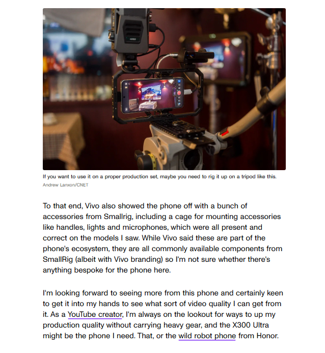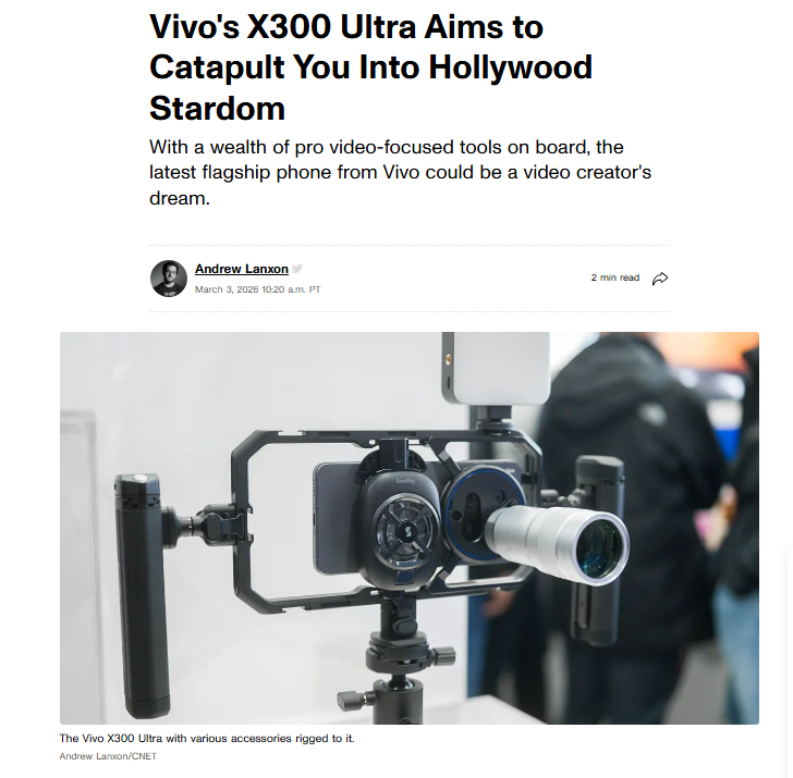 在MWC上也是让外媒记者吃上细粮了,夸赞说X300 Ultra让你成为好莱坞明星!报道中也是对X300 Ultra的视频拍摄能力,防抖,收音都给了很高度的评价了。