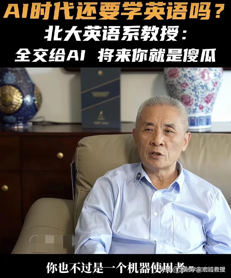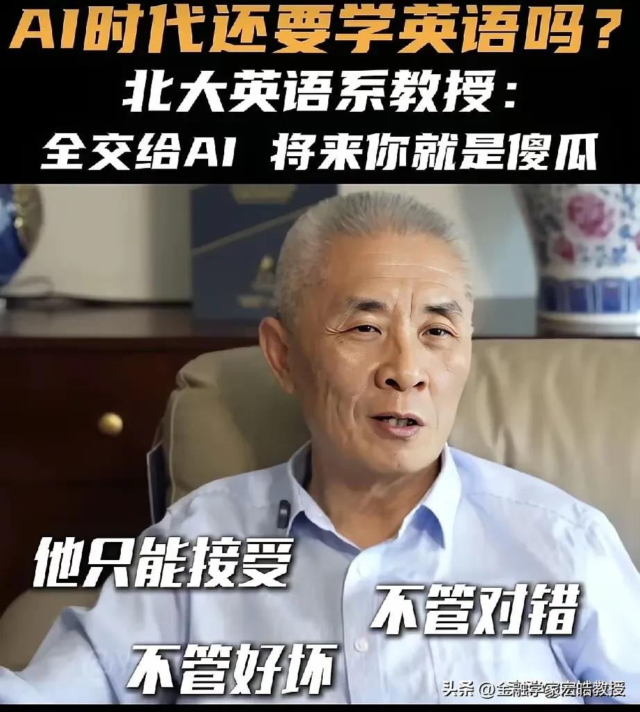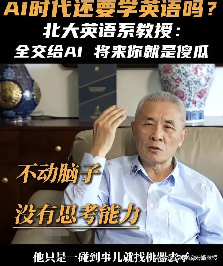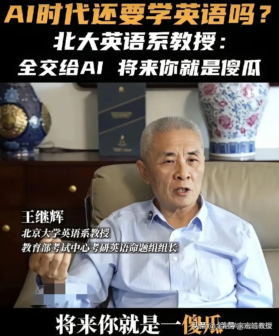 AI时代还要不要学不学英语?北大教授一句话点醒了多少人! “全交给AI,将来你就是傻瓜!”北大英语系教授王继辉的这番话,直接戳破了当下的一个误区。他强调,AI只是语料库,使用者必须有判断力,言下之意就是AI不一定全对,否则只会沦为没有思考能力的机器使用者。 这并非反对取消英语考试,而是提醒我们:英语是工具,AI也是工具。今年两会,政协委员洪明基就提出建议,将英语高考分数降至100分,注重听说能力考察,弱化较难语法,且一年考两次取最高分,本质上也是回归工具属性,而非彻底放弃。 说到底,真正的核心,是用AI辅助学习,而非让它替代思考。毕竟,能被机器取代的,从来都不是语言本身,而是缺乏独立判断的人。天南地北大拜年