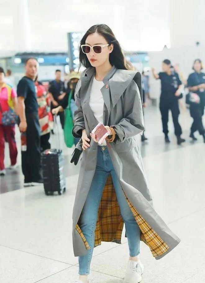 倪妮这灰风衣太绝了!极简穿搭天花板✅ 倪妮私服永远是松弛感范本!灰色长款风衣气场拉满,内搭白T清爽提亮,下搭牛仔裤随性不刻意✨ 风衣里侧的黄格纹暗藏小心机,白框墨镜一戴,走路带风,把基础款穿出高定质感,妥妥的通勤出街模板! 倪妮 倪妮机场私服 风衣穿搭 极简高级感