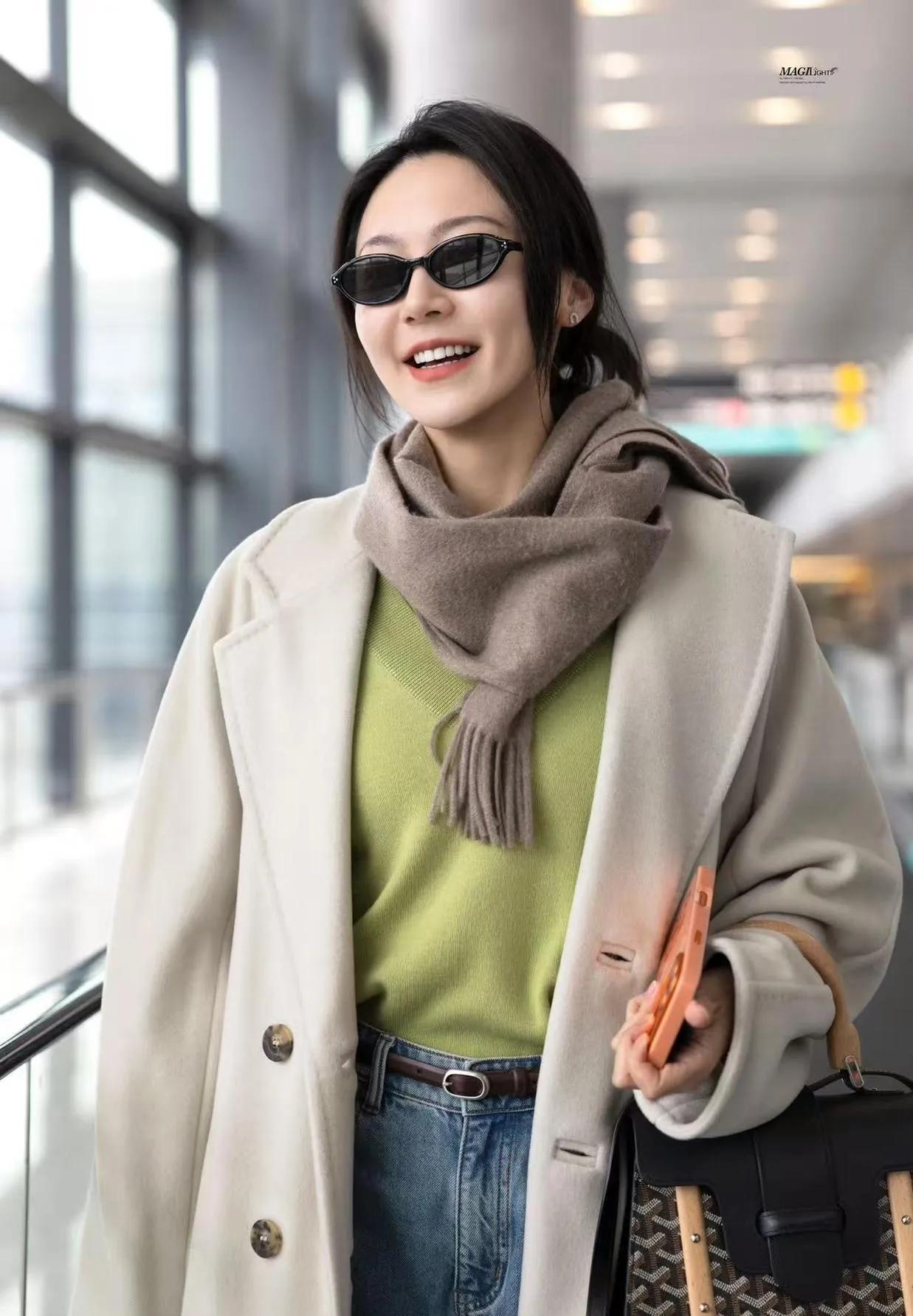 黄梦莹机场封神!奶油白大衣配牛油果绿打底,这配色太懂冬日氛围感了✨ 黄梦莹