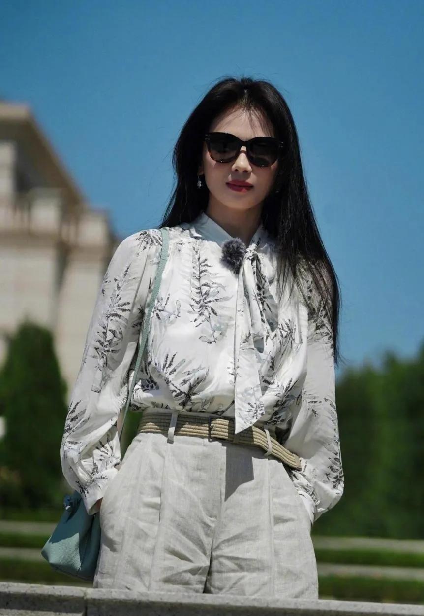 47岁刘涛状态绝了!清冷感穿搭模板请查收💫 谁能想到刘涛都47岁了!这身搭配太戳中年女性的审美✨ 水墨风印花衬衫自带温婉气质,系带领节增添精致感,下搭浅灰阔腿裤垂坠感满分,随性又藏肉。 薄荷绿包包点亮整体,墨镜一戴气场全开,优雅与松弛感并存,这状态真的太能打! 刘涛 刘涛私服 中年女性穿搭 高级感穿搭