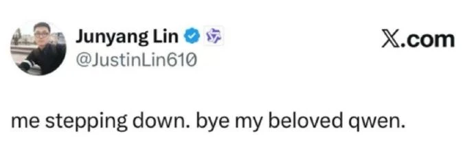阿里 Qwen 团队技术负责人林俊旸突然在社交媒体发布状态:“me stepping down. bye my beloved qwen.”(我辞职了,再见了我爱的 qwen)。