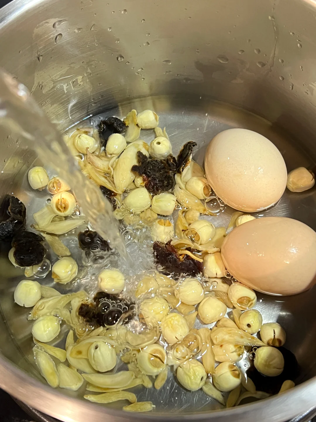 3️⃣将除枸杞外所有洗干净的食材放进锅中,加1000毫升清水,大火烧开后转小火煲30分钟,放枸杞即可。