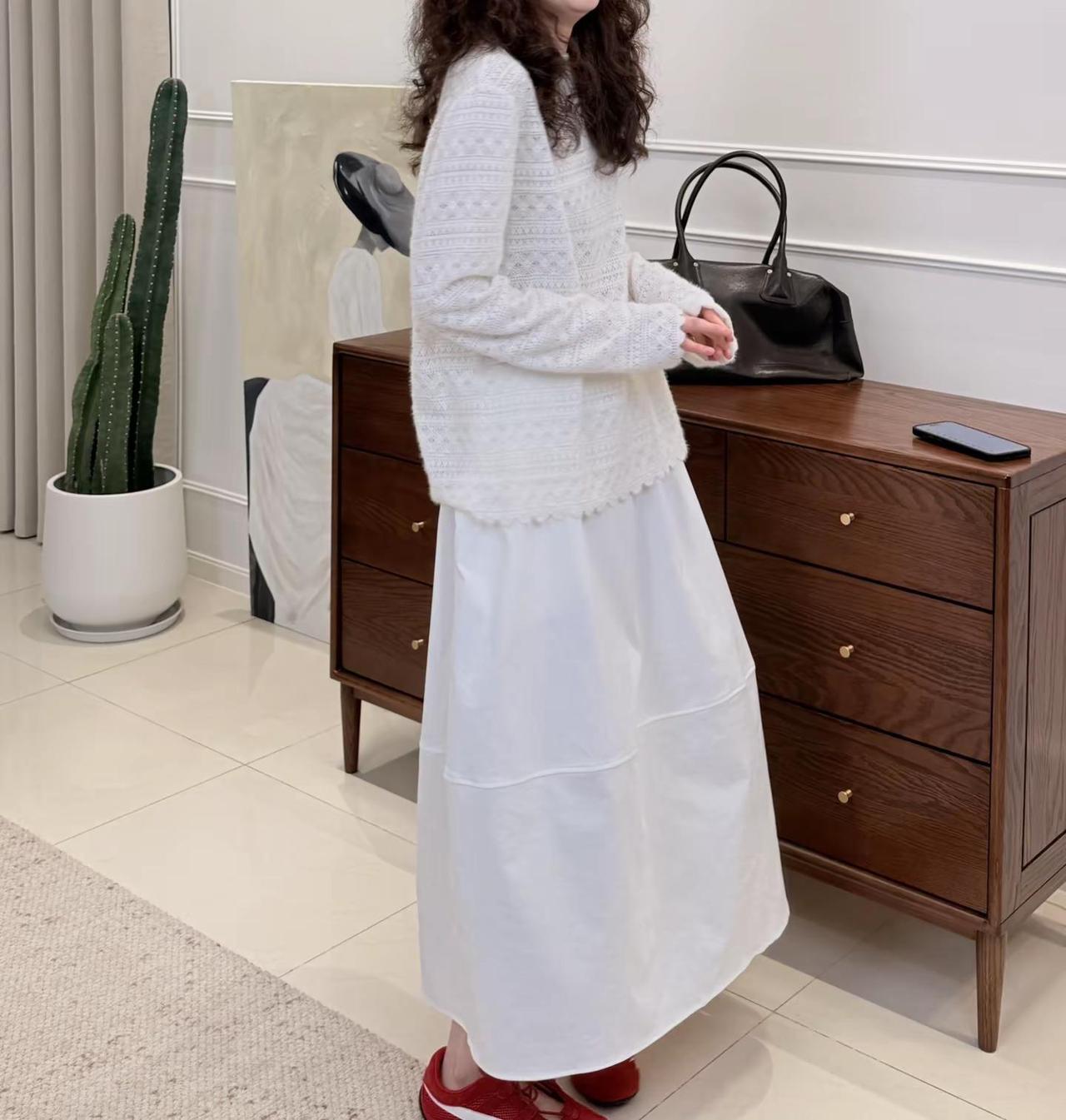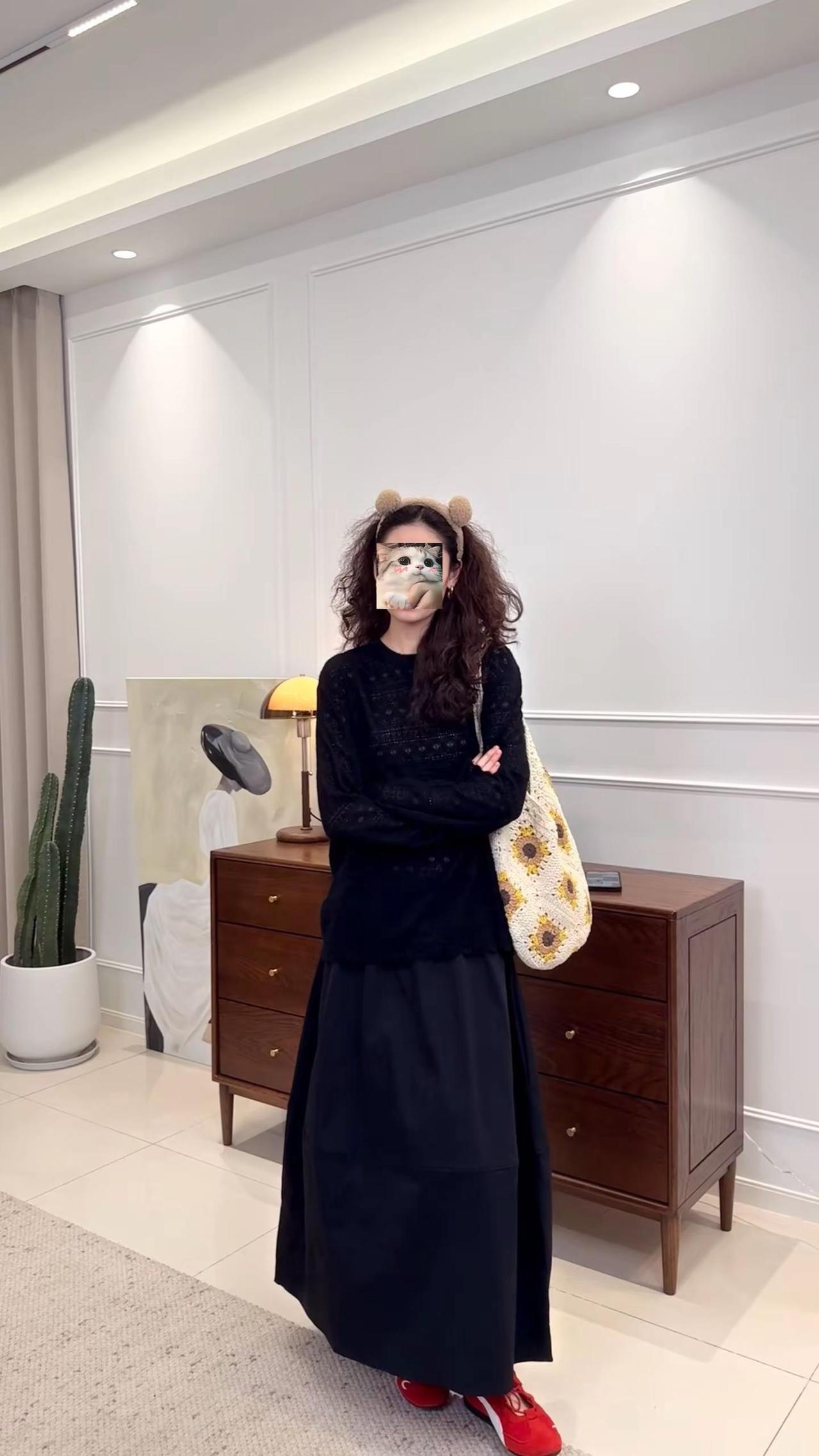 温柔冬日穿搭,白色披肩搭配黑色裙摆,简约优雅。