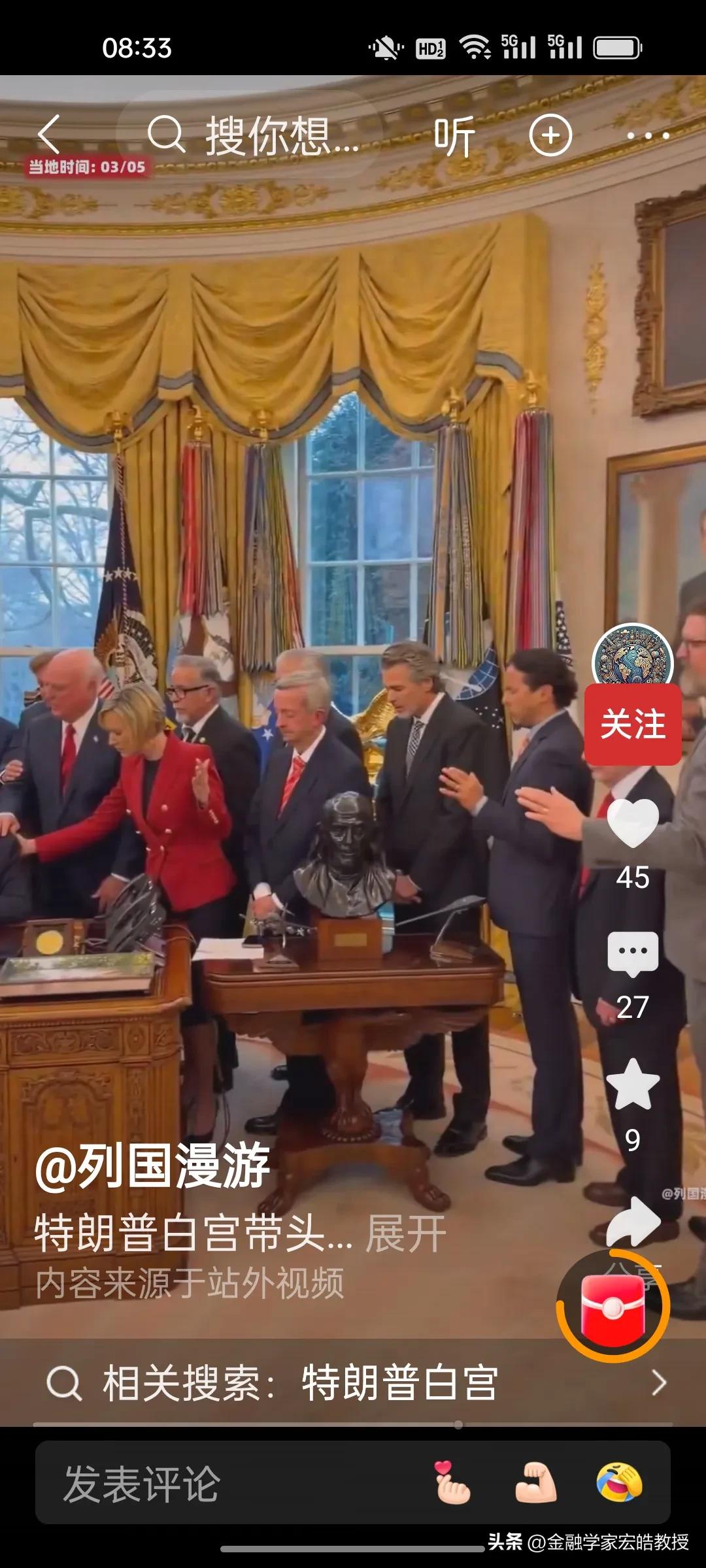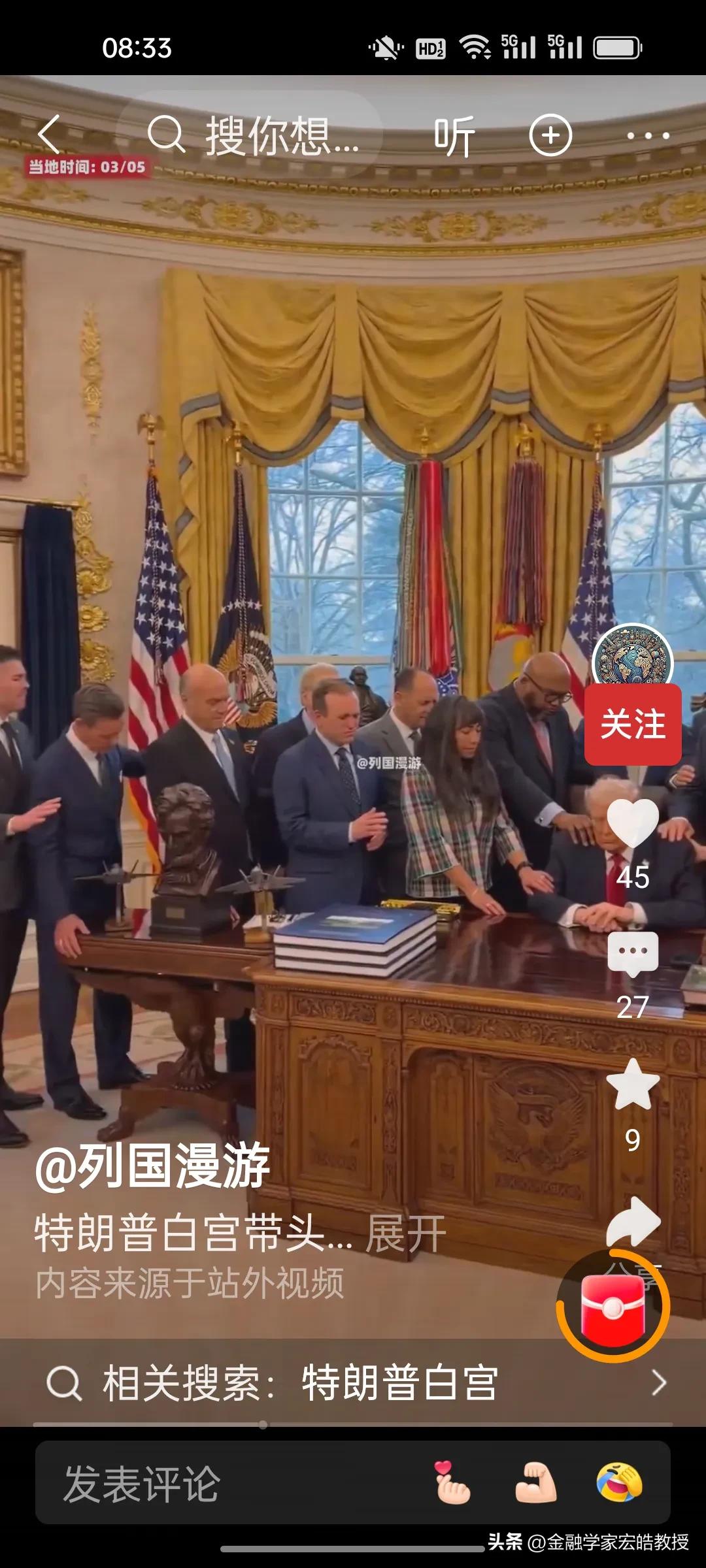 特朗普在白宫祷告,讽刺了谁? 当地时间3月5日,特朗普在白宫被一众宗教领袖围在中间,众人手搭在他身上集体祷告,为中东行动的美军士兵祈福,祈求“智慧、力量与保护”,这也是安抚国内情绪的一种做法。 可就在不久前,美军空袭伊朗,造成大量平民伤亡,其中包括165名无辜的小学生。 一边是白宫里的虔诚祈福,一边是伊朗家庭的生离死别。当权力把战争当筹码时,所谓的“神圣仪式”,不过是对无数亡魂的最大讽刺。