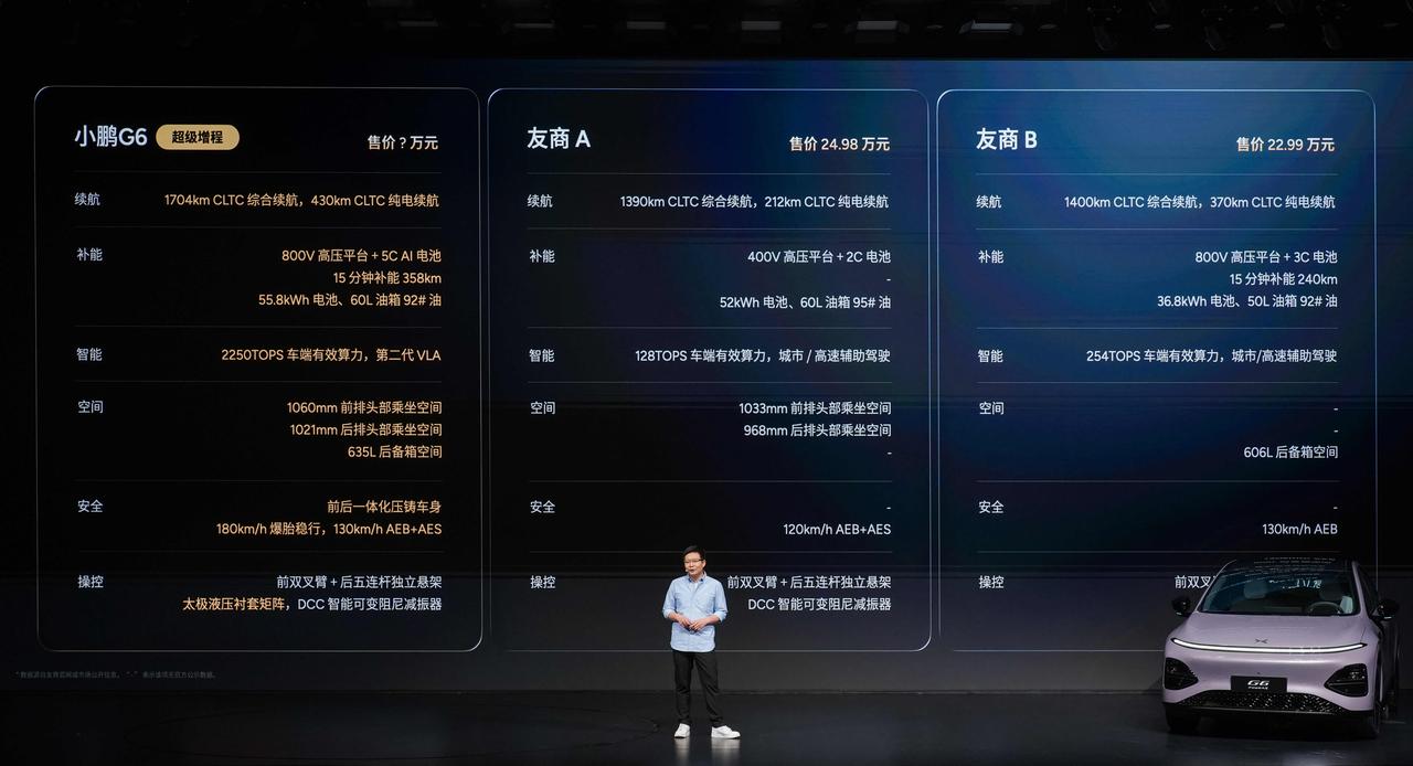 小鹏G6超级增程版发布|天玑AIOS 6.0,六项全能一步到位,重新定义国民好车标杆! 1704km全球最长综合续航,430km纯电通勤一周不充;20万级唯一800V+5C,12分钟补能314km。至高2250TOPS算力,L4级智驾下放;85.6%得房率大空间,180km/h爆胎稳行+顶级安全。前双叉臂+DCC底盘,质感媲美豪车。3D SR导航+跨场景语音,座舱越用越懂你。 小鹏G6超级增程Max版18.68万起,Ultra SE加1万2,Ultra加2万共三个配置。 即日起至2026年3月31日24点前下定,可享最高价值33200元限时权益礼包: 5000元新春购车补贴 至高价值9300元金融/选装基金(二选一) 至高价值5000元置换权益 至高价值13500元复购权益 价值400元交付礼