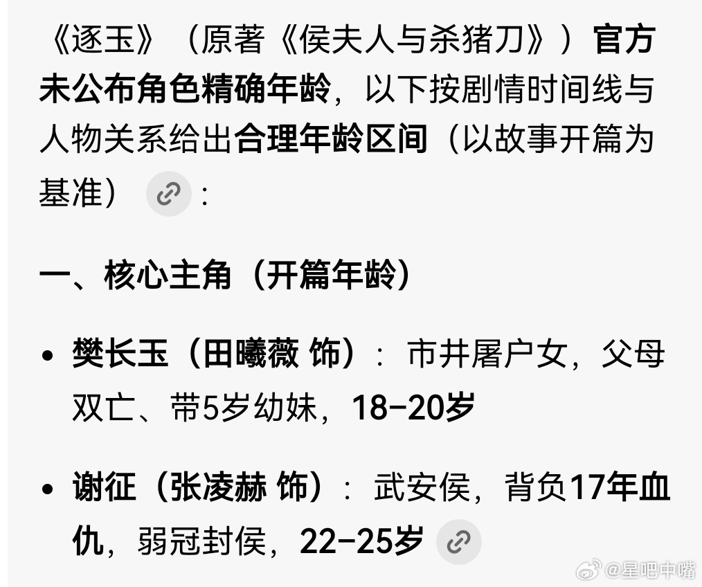 逐玉《逐玉》人物年龄