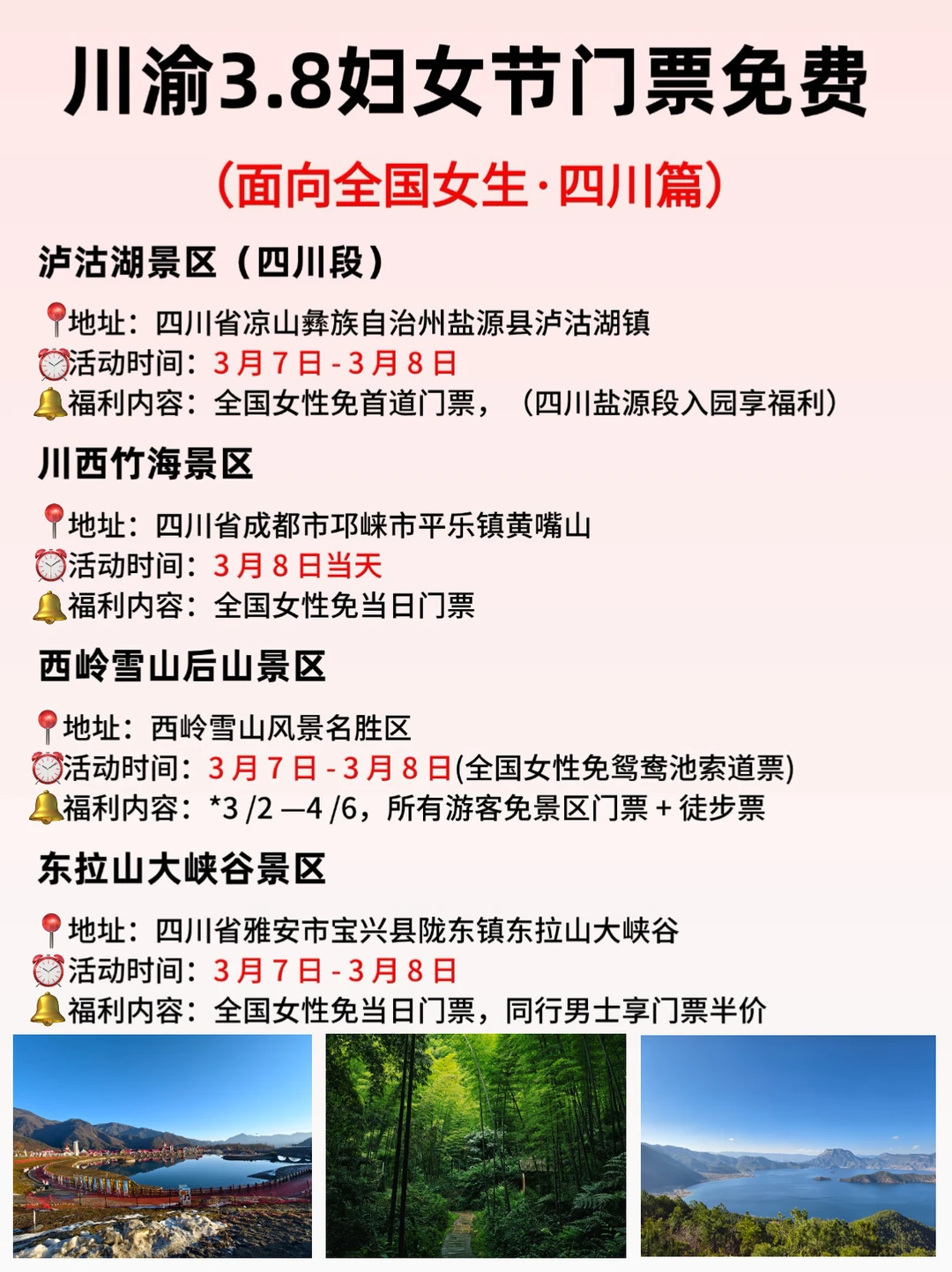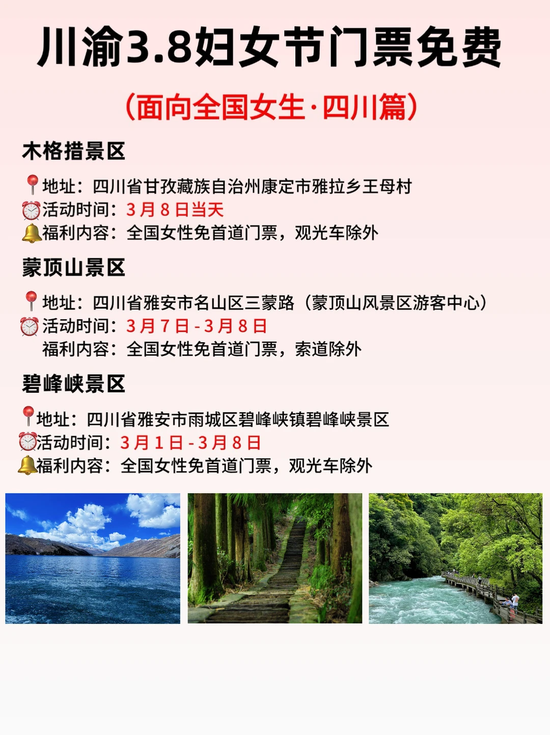 2026年三八国际妇女节恰逢周末,川渝地区多个景区免门票,覆盖重庆、四川多地的山水秘境、网红打卡地!