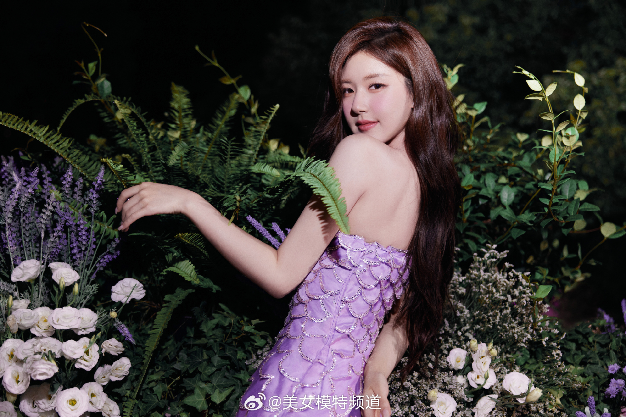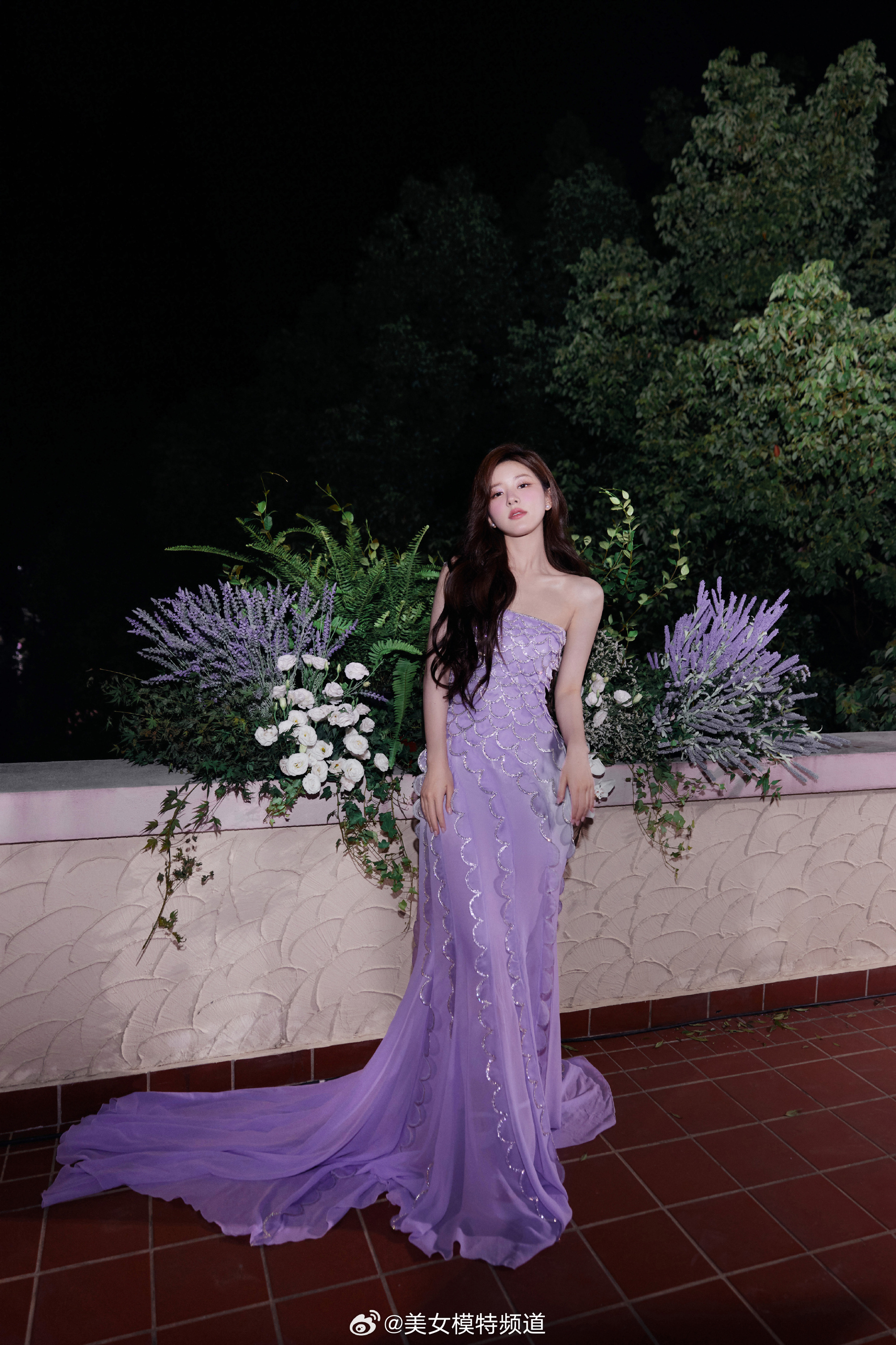 赵露思紫色抹胸人鱼裙造型大片