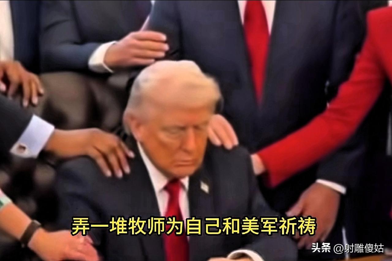 没想到在武侠电影或者神话小说里的场景,出现在现实当中,美国总统特朗普找了一堆牧师,为其攻打伊朗进行祈祷,只见特朗普表情凝重的坐在椅子上,众牧师纷纷伸出手掌抵在他的肩膀与后背上,这一幕很像是在为其“用功疗伤”。 或许在川普的认知里,他去攻打伊朗,斩首别人的领袖,轰炸别人的学校,造成的惨烈场面,生灵涂炭是正义之举,每个人都应该支持他,感谢他,所以他自己,包括他的军队,理应受到庇佑和祝福。 现场西装革履的牧师们,仿佛个个都是武林高手,都能“通神”,他们通过内功和意念将好运传递给川普,在由川普传递到其手下的军队利士兵身上。 看起来很是神乎其神,但他就是这样干的,众目睽睽,亲眼目睹。