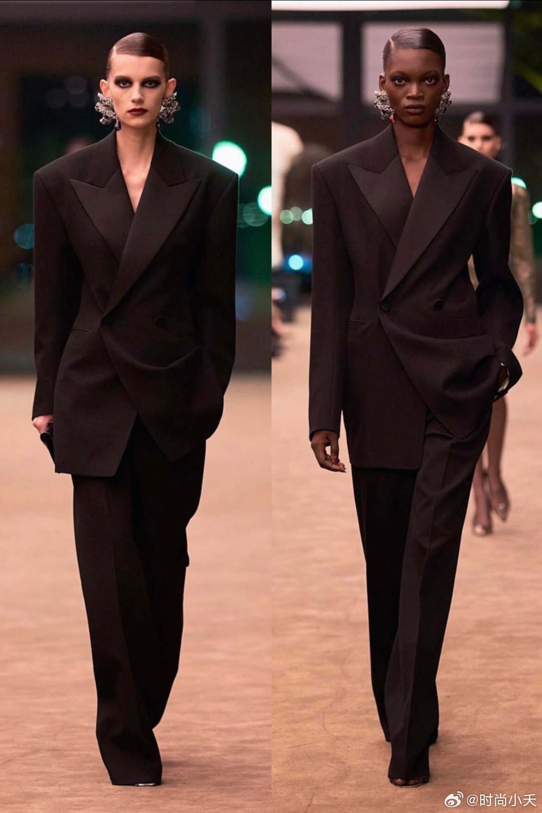 我数了下,整场秀至少有 12 套 Le Smoking 变体。大家看完这场秀,觉得是经典轮廓的坚持(A),还是设计有点重复(B),亦或是 Saint Laurent 已经只剩一种衣服(C)呢?