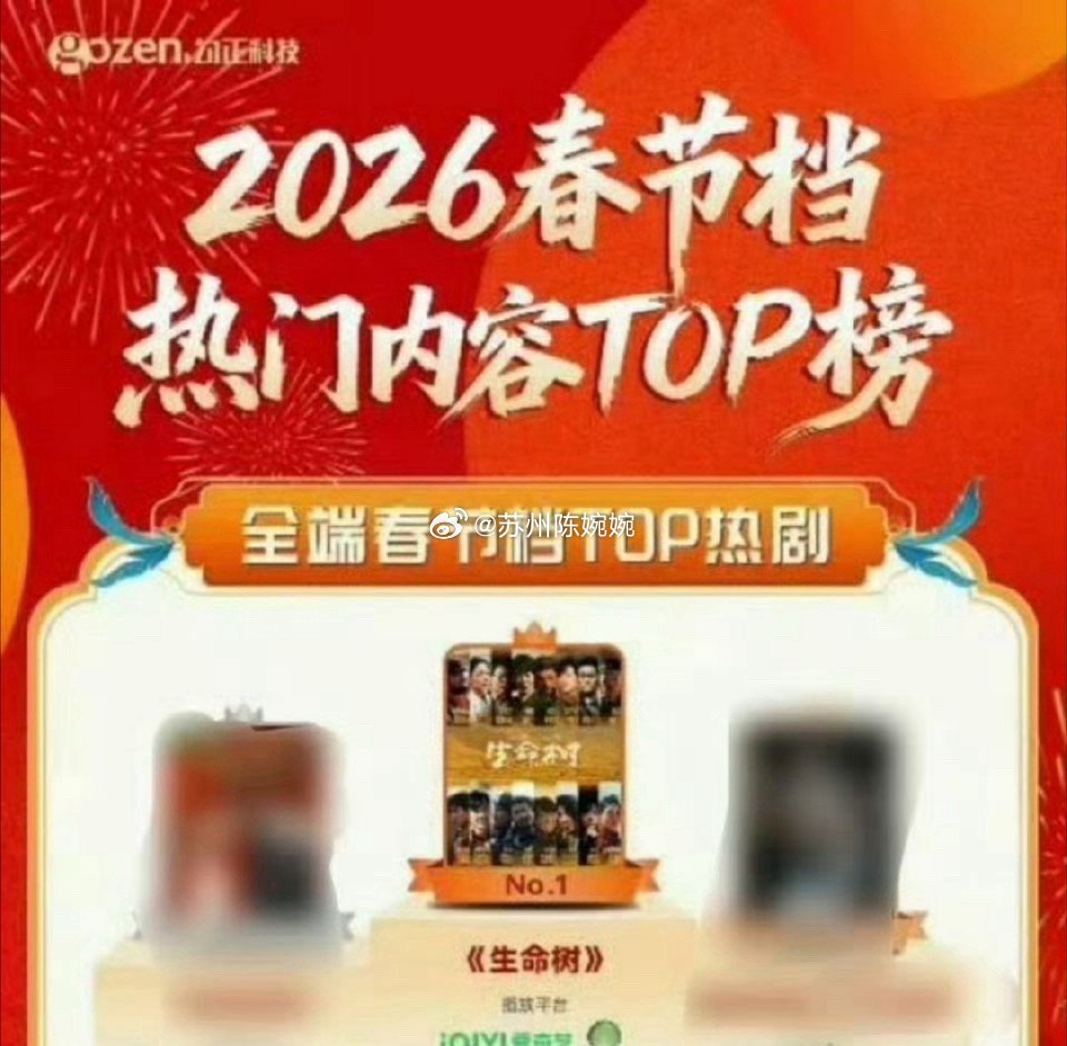 2026年春节档热门内容TOP榜里面,杨紫主演的《生命树》直接排名第一啊,真的是
