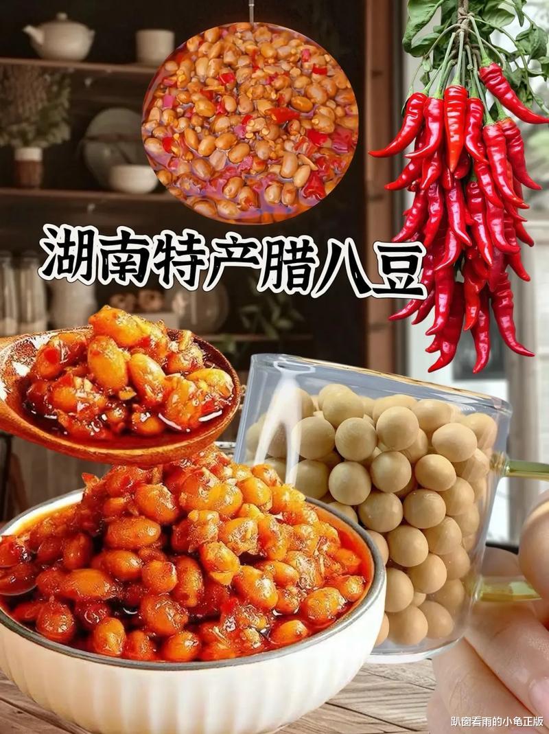 在湖南一些地区,人们会在立冬后开始将黄豆泡胀、煮熟、发酵,再用食盐、花椒、辣椒、白酒等调料腌制,到了腊八这天再食用,称其为“腊八豆”。腊八豆可配做多种菜肴,蒸、煮、炒炸均可;荤素食法皆是佐餐下饭的美味。