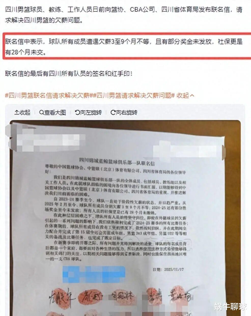 后来好不容易搭上了注册的末班车,到了2025年11月17日又出现风波,一封集体讨薪的联名信出现在网络上,这封联名信详细列出了俱乐部的“三宗罪”:从2025年2月起拖欠工资,2024-25赛季胜场奖金至今未发,最严重的是所有人员的社保已断缴28个月。