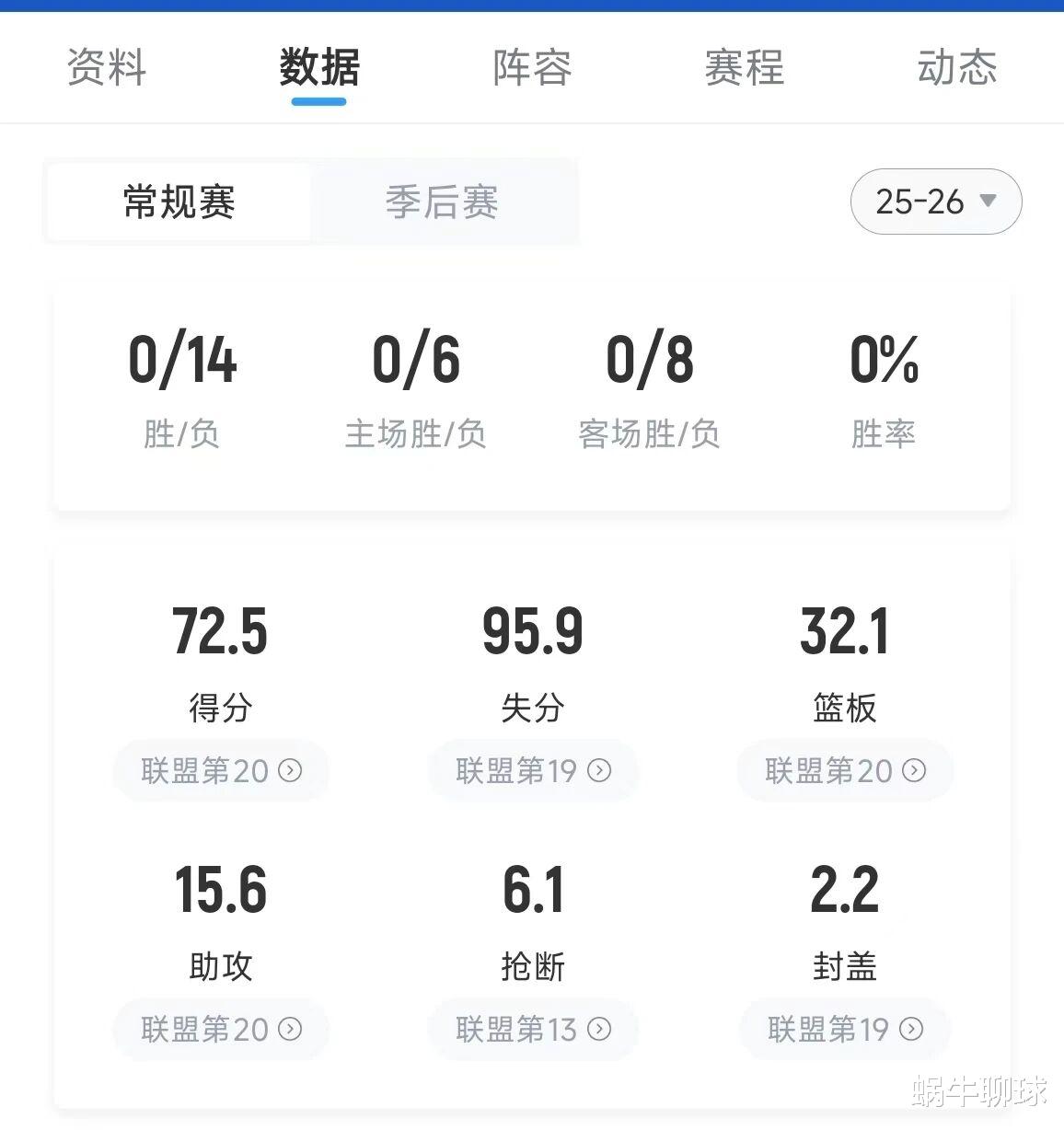 一两项数据联盟垫底说明球队存在短板,但几乎所有的数据都是全联盟倒数第一,只能说明这支球队已经烂到极致了,他们有可能直到赛季结束都不会赢下一场比赛,如果以全负的方式结束赛季,球队将会被钉在历史的耻辱柱上,这样的球队还有存在的必要吗?恢复升降级迫在眉睫!