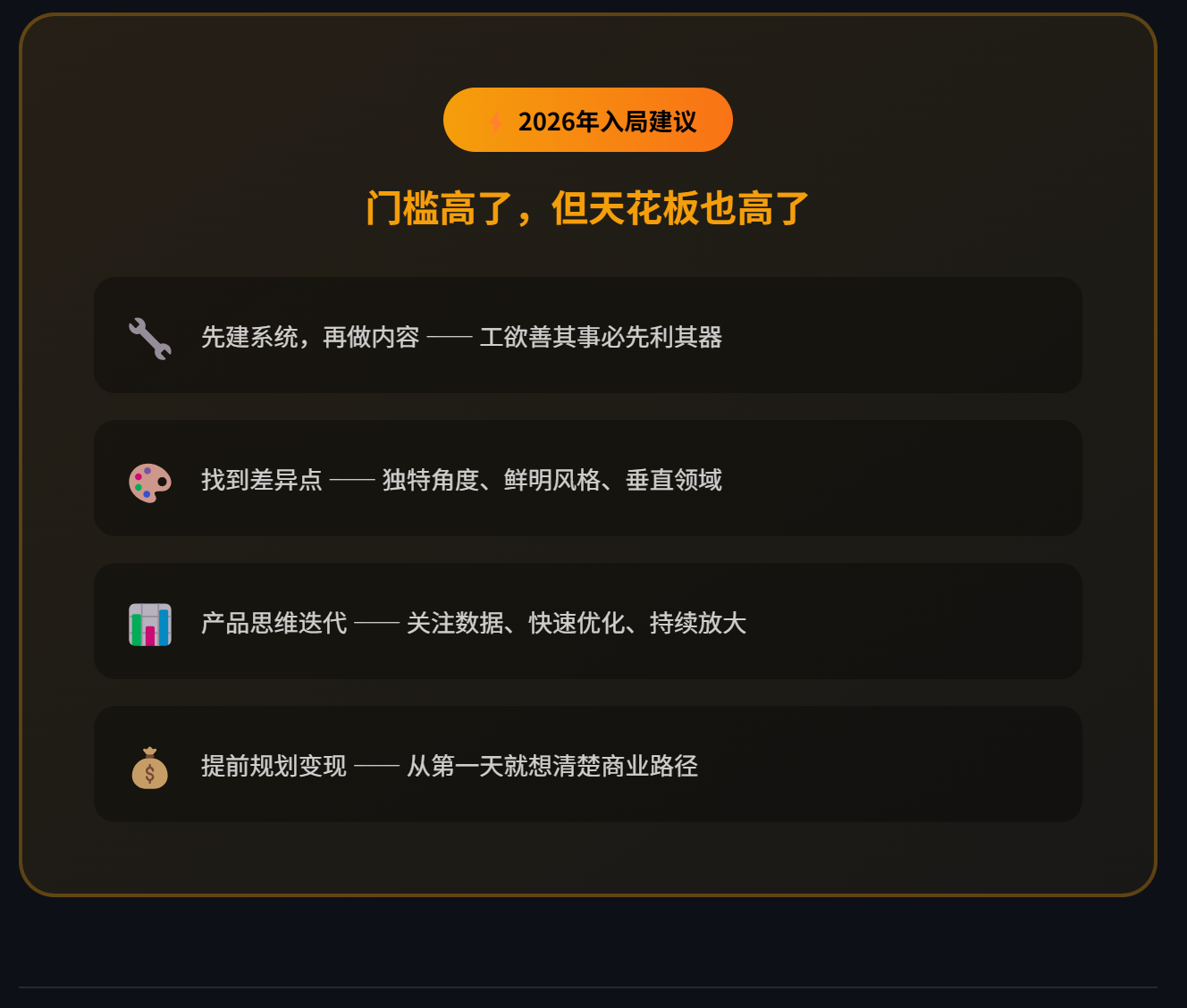 如果你还想用2025年的打法来做,大概率会失败。但如果你能适应2026年的竞争环境,这个赛道依然有机会。