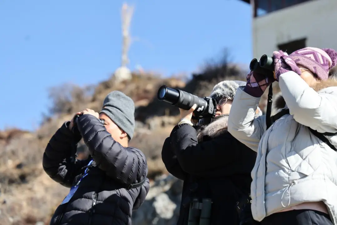 突然有人压低嗓音:“鹤要飞了!”下一秒,快门声此起彼伏。这场面,属于刚刚结束的第八届迪庆观鸟季。