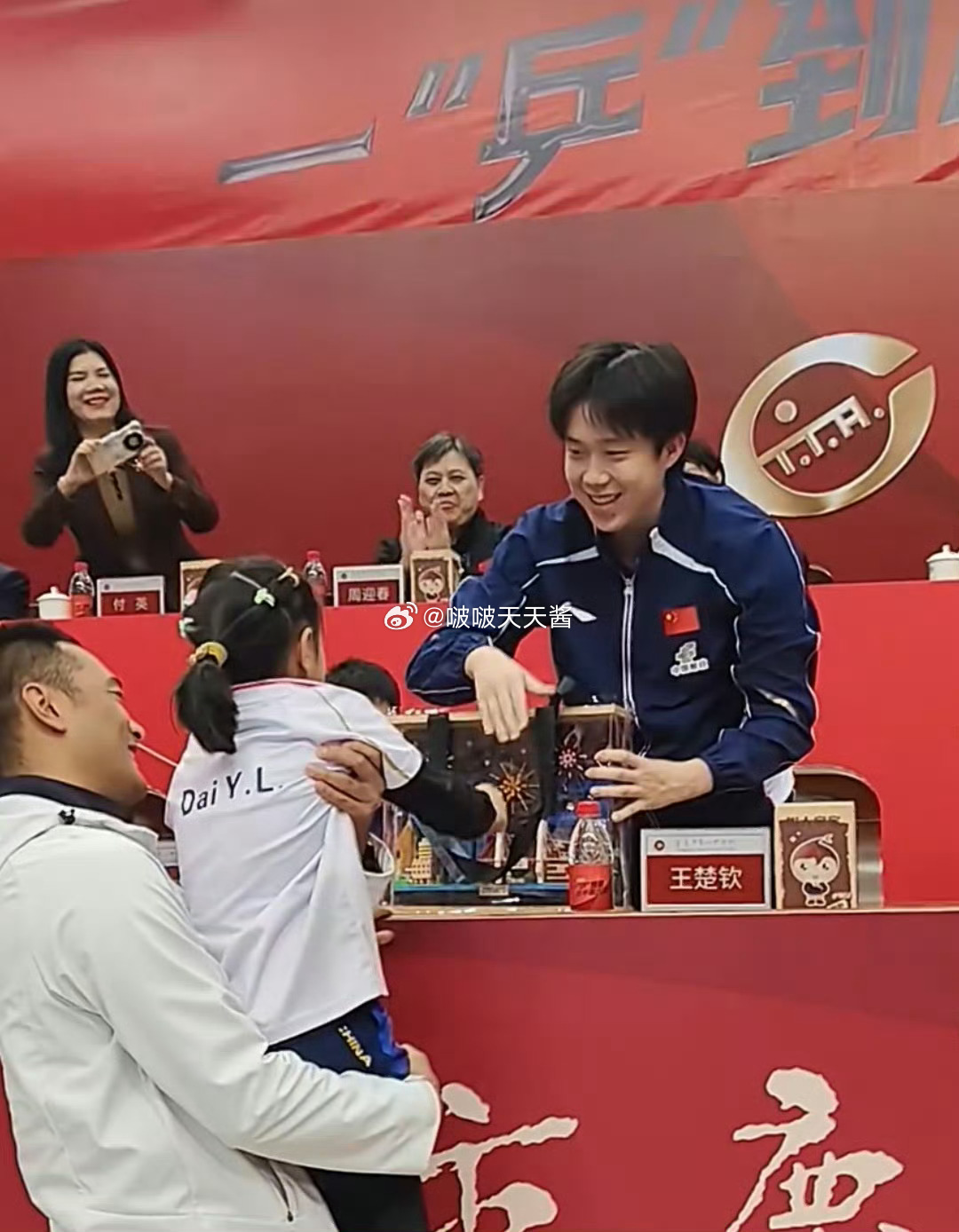 9岁小球员送王楚钦重庆拼图超级有爱的画面