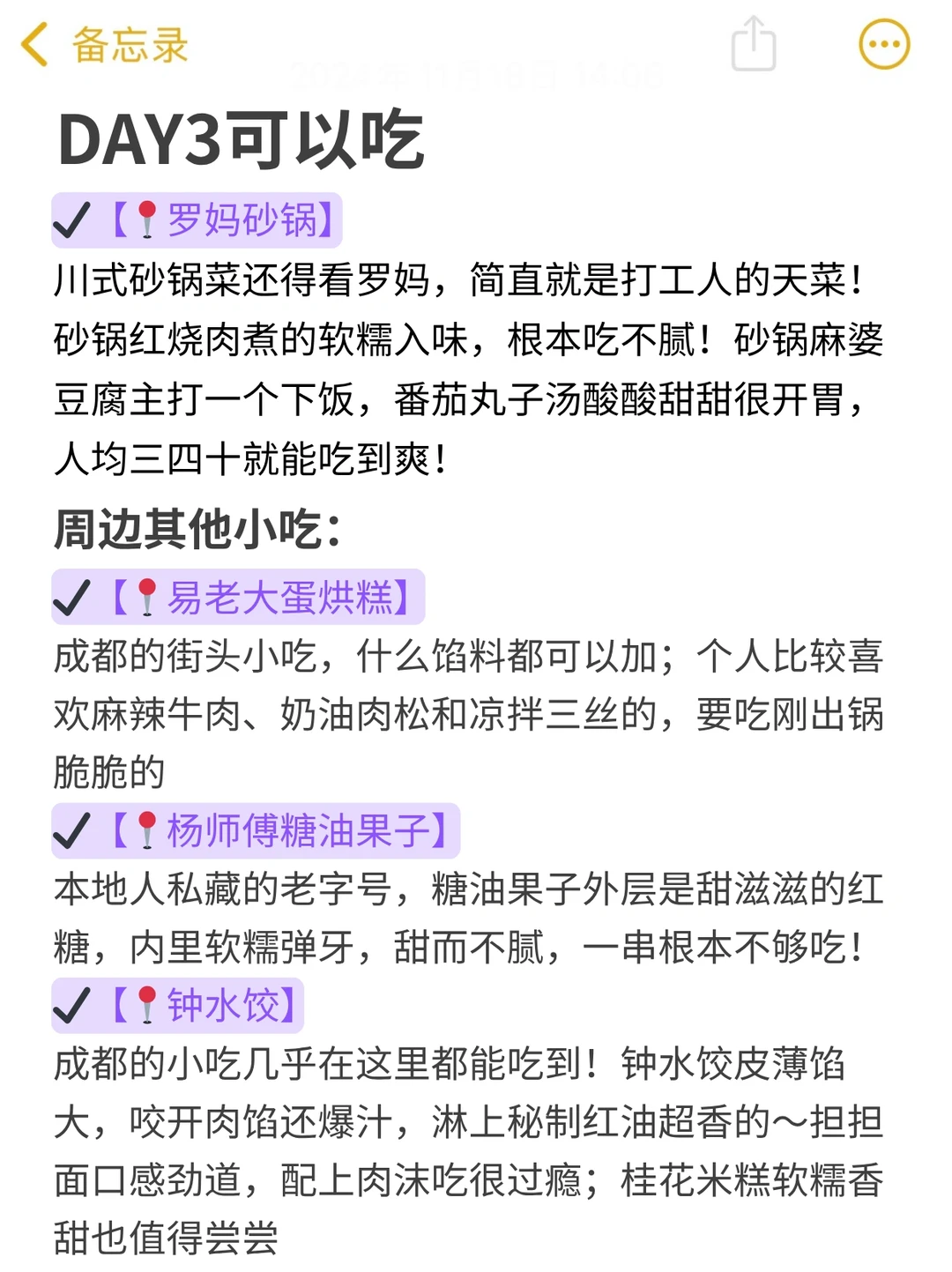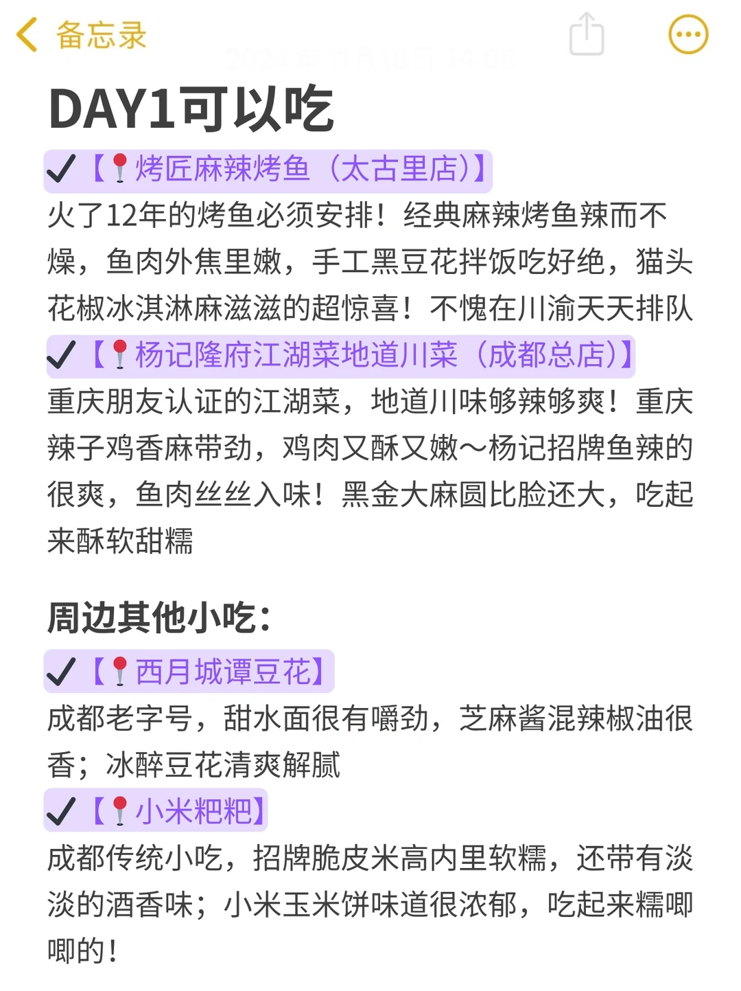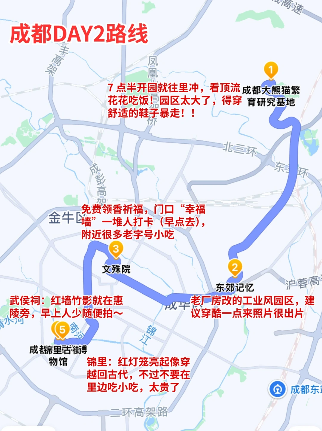 刚去成都玩了3天回来,真的是轻轻松松呀✌️ 虽然是p人,但还是整理了一份详细的成都旅游攻略 姐妹们可以参考参考~ 我觉得已经够全面了😎包你不踩雷 · ✔️轻松版旅游路线 DAY1️⃣:春熙路-国金中心-大慈寺—望平街-九眼桥 DAY2️⃣:熊猫基地-东郊记忆-文殊院-武侯祠-锦里 DAY3️⃣:成都博物馆-人民公园-杜甫草堂-宽窄巷子-奎星楼 · 🍲成都美食分享 🥢烤匠麻辣烤鱼(太古里店) 🥢杨记隆府江湖菜地道川菜(成都总店) 🥢罗妈砂锅 🥢渝少侠·熊猫小院火锅 · 🎁成都特色伴手礼
