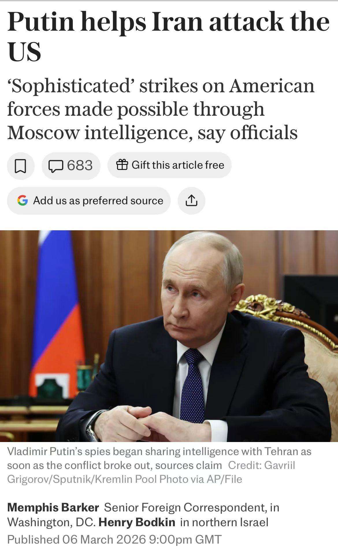 ①特朗普表示,只有伊朗无条件投降,才能结束对其的战争。②俄罗斯帮助伊朗攻击美国。据报道,俄罗斯为伊朗提供军事情报,这使得伊朗对美军的综合打击成为可能。