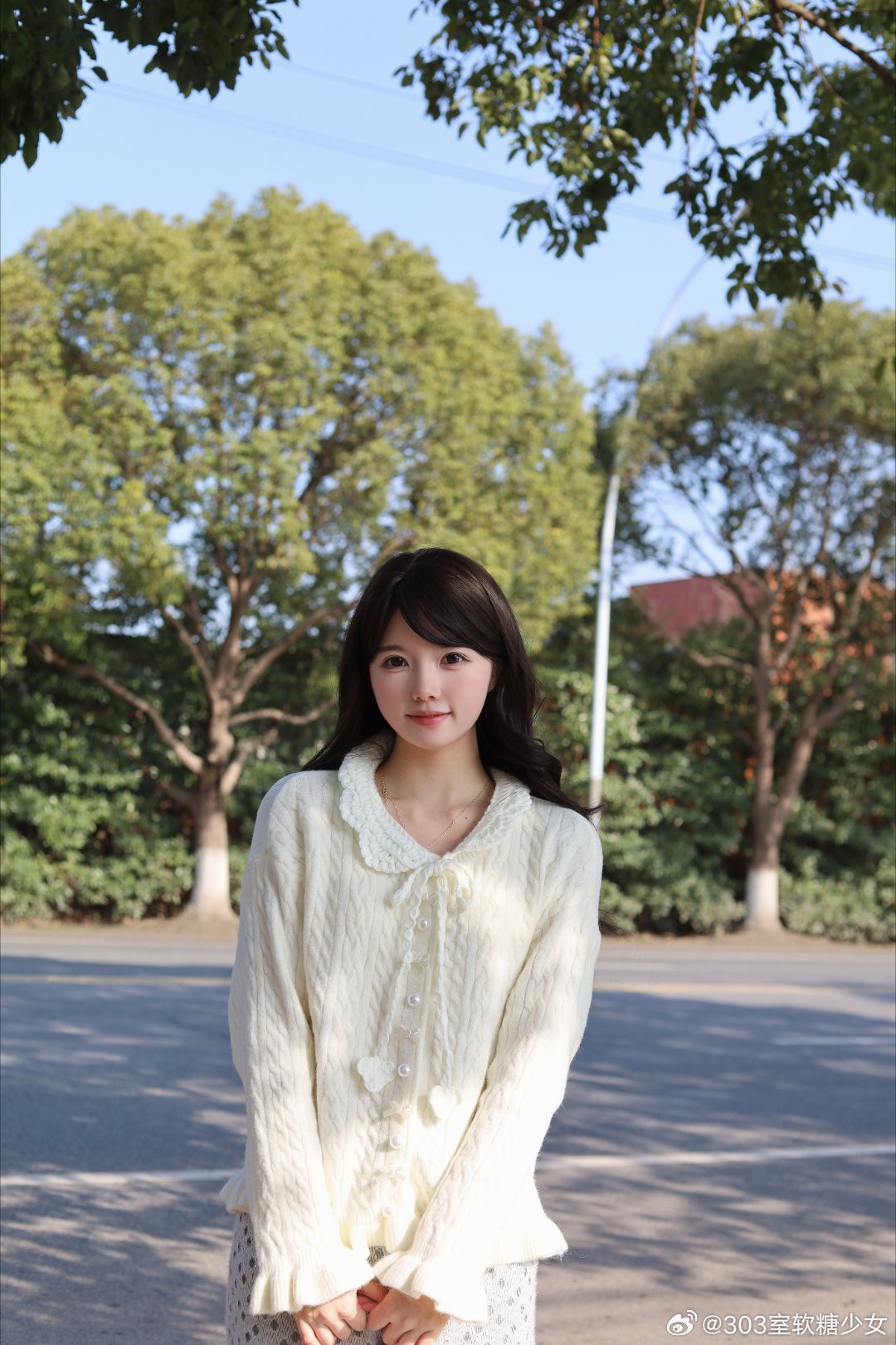 温柔的米白色针织开衫搭配慵懒的波点阔腿裤😎整个人都沉浸在一种松弛又浪漫的氛围里