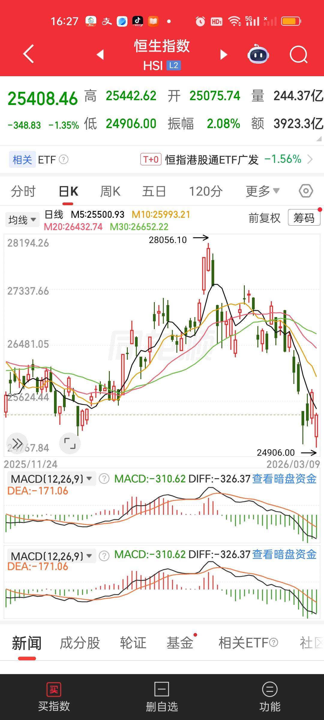 港股今天尽管低开高走双双收了一根中阳线,但这里不见得就是底部!原因很简单,美股期货指数目前依旧是暴跌的状态,迷你道琼斯指数今天最大跌幅甚至超过了1200点。很显然美股并没有企稳,这会直接反应到港股身上。或者说给港股施加巨大的压力。尽管美股已经连续暴跌好几天了,但今天的跌幅可能要比前面几个交易日还要大的多。 恒指今天创了最低,但指数收了一根中阳,目前依旧收在所有均线的下方,恒科今天也收了一根中阳线,但指数收在了5日线上方,而且指数并没有创出新低。恒科这里做底的可能性反而还要大于恒指。