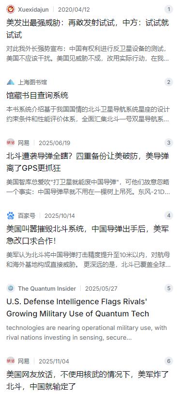 中美一旦开战,美国的第一击,不会是航母,也不是导弹,而是直奔中国的“眼睛”——北斗系统。但问题是:美国真能打掉北斗?即便打掉了,中国导弹就变成无头苍蝇了? 麻烦看官老爷们右上角点击一下“关注”,既方便您进行讨论和分享,又能给您带来不一样的参与感,感谢您的支持! 先说说美国有没有这个能力。说实话,美国在反卫星这块确实是老手,从上世纪就攒下了不少家底。早年间用战斗机打卫星,后来用标准导弹打失控卫星,现在又在范登堡基地和阿拉斯加部署了陆基反卫星系统,技术上确实能对低轨道卫星构成威胁。美军的一些高官也放过大话,试图拿这个来搞心理战,想吓唬人。但问题是,说狠话跟办成事是两码事。 北斗这个系统在设计之初,就没打算让别人一锅端。咱们的卫星不是排排坐等着挨打,而是分布在不同的轨道高度,有高轨有低轨,有地球静止轨道也有倾斜同步轨道。这种布局本身就是防打击的:你想打,得费老劲一个个去追,而且不同轨道得用不同的武器,难度和成本翻着跟头往上涨。就算你真打下几颗,剩下的照样能干活。更关键的是,咱们手头还有快舟这样的快速补星火箭,这边刚打掉,那边嗖嗖就能发新的补上去。想一次性全瘫痪?账算不过来。 再说了,打仗这事儿讲的是对等。美国要是敢动北斗,咱们的反卫星武器是吃干饭的吗?GPS卫星就在那儿,跑得了和尚跑不了庙。当年咱们搞反卫星试验,精准打掉自己报废卫星的事儿,美国人心里有数。你敢打我的眼睛,我就戳你的眼睛,最后的结果很可能是俩人都变成半瞎子,谁也别想好过。这种互相摧毁的买卖,稍微有点脑子的战略家都得掂量掂量。 退一万步讲,就算北斗信号真在某个时候断了,咱们的导弹就抓瞎了吗?这更是想当然。现在的尖端武器,早就不把宝全押在一个篮子里。你像被称为航母杀手的东风系列,脑袋上装着雷达,眼睛盯着红外热源,还能靠地形匹配系统认路。卫星没了,雷达照样扫海面,红外照样盯航母发动机喷出的火苗。长剑-100这样的巡航导弹,本身就有惯性制导加上地形匹配,飞出去靠的是脑子里的数字地图和脚下的地貌比对,不是光靠天上指路。这就像一个人走路,不光看天上的星星,还看路边的房子、手里的指南针,少一样不至于摔跤。 说到这个,就不得不提当年的银河号事件。1993年,咱们的货轮在印度洋上被美国关了GPS信号,船在海上漂着走不动,受尽屈辱。正是那次吃了大亏,让咱们铁了心要搞自己的导航系统。从北斗一号到北斗三号,花了三十来年,几十万人呕心沥血,图的就是今天这句硬话:导航命脉,握在自个儿手里。现在的北斗,不光军用,全世界的手机、渔船、运输车都在用,覆盖了130多个国家,用户超18亿。美国真要动手,砸的可是全球的饭碗,这政治代价它扛不扛得起? 还有一点常被人忽略:太空不是真空,打碎了东西满轨道飞,那叫自掘坟墓。美国现在在轨卫星数量全球第一,包括价值连城的空间站和侦察卫星。打掉一颗北斗,产生的碎片就像霰弹,能在轨道上飞几十年,撞上谁算谁倒霉。NASA统计过,哪怕是一厘米大的碎片,都能把航天器打个对穿。美国那些金贵的玩意儿,就忍心扔进这片雷区? 说到底,围绕导航制导的较量,早就不是比谁先下手炸卫星那么简单了。现在拼的是技术体系的深度和韧性。咱们这边量子导航已经在路上,靠地球磁场就能定位,卫星断了也无所谓。反隐身雷达能把F-35从天上扒出来。人工智能辅助的指挥系统,反应速度比人快得多。美国国防情报局最近的报告也承认,量子传感等技术正在逼近实战,传统依赖GPS的优势正在被侵蚀。 所以啊,那种“打掉北斗中国就输”的论调,要么是还活在几十年前的剧本里,要么就是故意喊出来给自己壮胆的。现代大国博弈,没有一锤子买卖的买卖。真正的胜负手,藏在工厂的自主产业链里,藏在实验室的技术迭代里,藏在整体国防体系的韧性里。咱们从当年银河号上的无奈,到今天北斗巡天的自主,走的就是一条不被人卡脖子的路。这条路上的每一步,都是在告诉世界:有些当,上一回就够了。