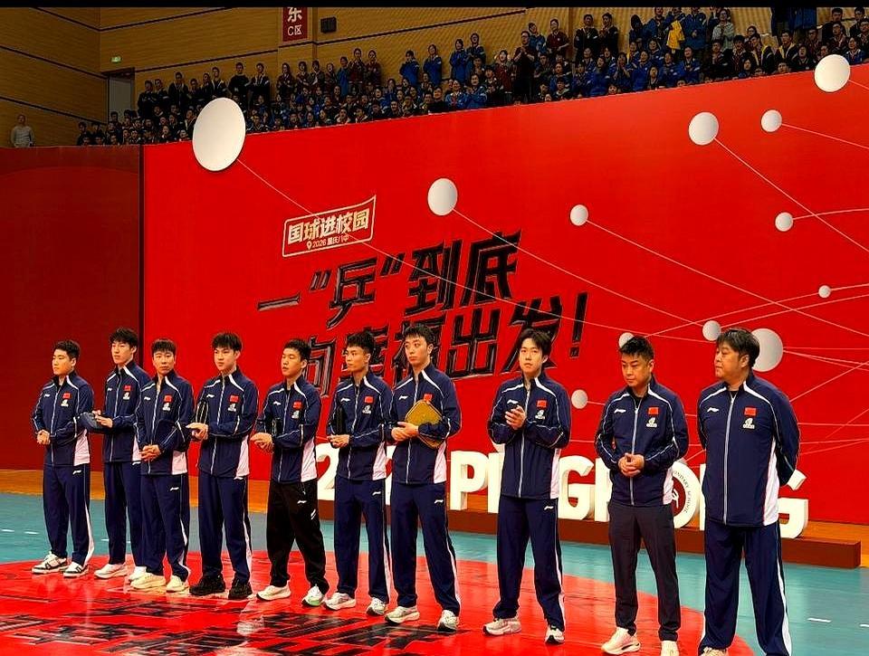 王皓3月8号带着国乒男队炸进重庆八中,现场尖叫声差点掀翻体育馆顶。 这是WTT重庆冠军赛的预热活动,王楚钦梁靖崑向鹏全来了。梁靖崑挤在人群最边边,粉丝扫了三遍才找着人。向鹏裤腰垮到胯骨,全场追着喊让他提裤子。王楚钦站王皓孙逊中间,头围比例终于正常,再也没人吐槽他头大。 9岁小球迷送王楚钦洪崖洞拼图,旁边几个队友凑过来,眼神酸得直冒泡。有人问咋没见女队,人家当天去了巴南鱼洞中学做活动,半点儿没耽误正事。 不是隔着屏幕的世界冠军,是触手可及的国球星光。