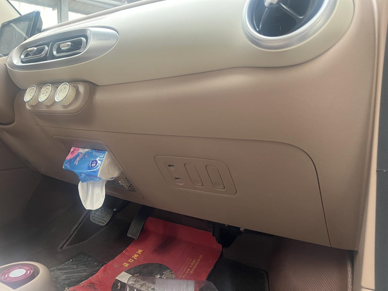 今天坐朋友的五菱宏光MINIEV,内饰的双拼色颜值不错,前排空间还可以,还有副驾驶的挂钩设计挺细心的,也挺实用的,就是副驾驶也没个储物盒,平时用起来是不是不得劲呢。【来自懂车帝车友圈】