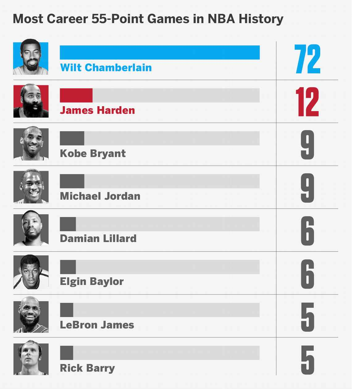 迈克尔-乔丹、科比-布莱恩特和詹姆斯-哈登等传奇得分手多年来都曾试图冲击这些纪录,但都没有接近打破这些纪录。